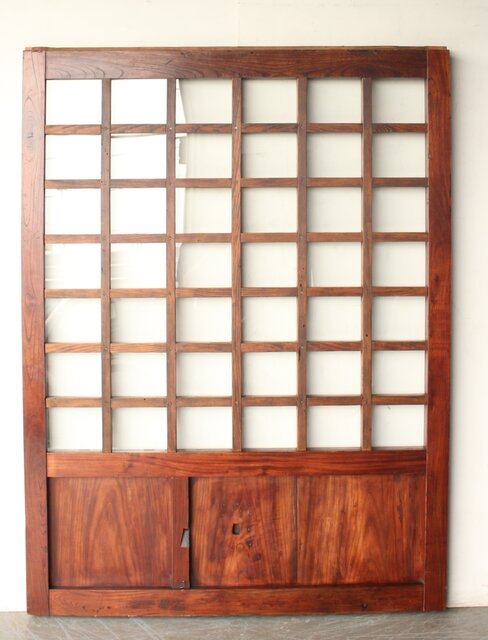 総欅 ガラス入細分升格子蔵戸 W0255