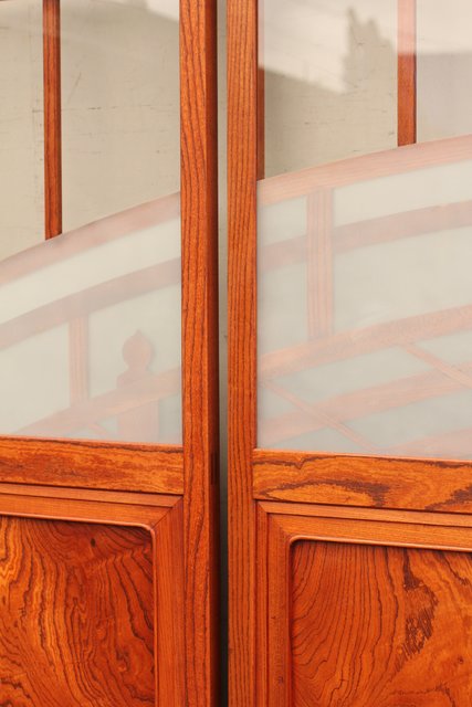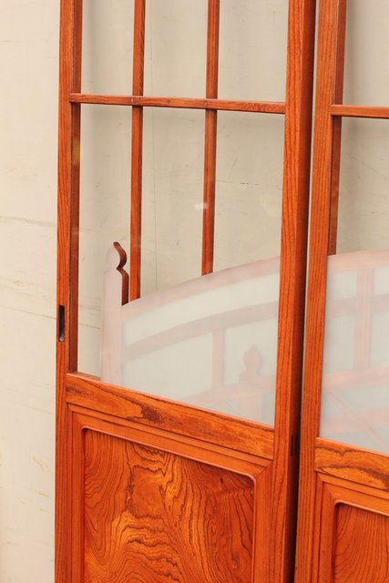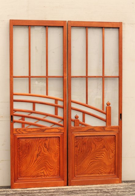 総欅欄干図木彫建具2枚1組 B695