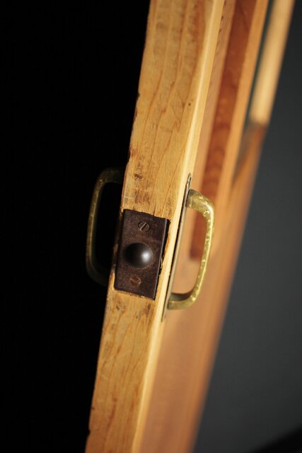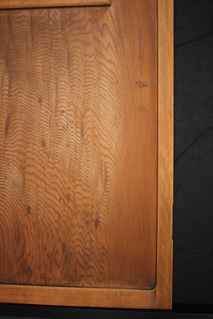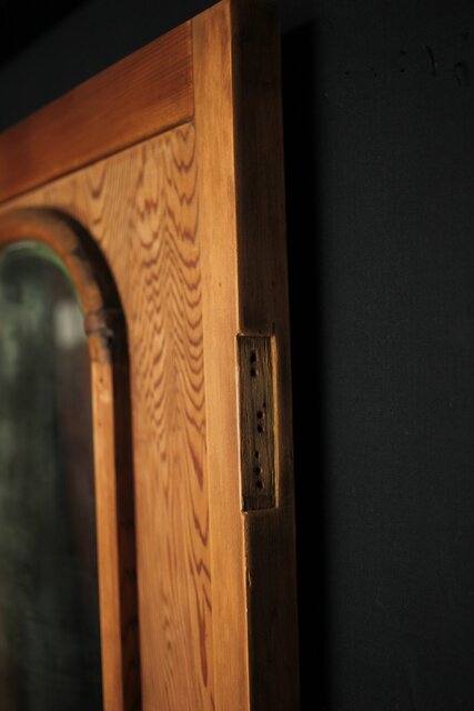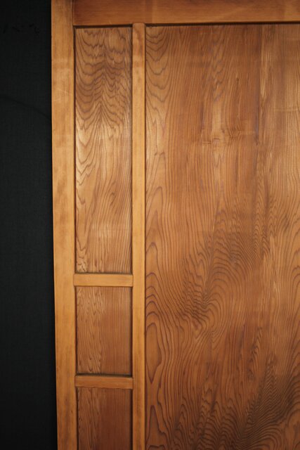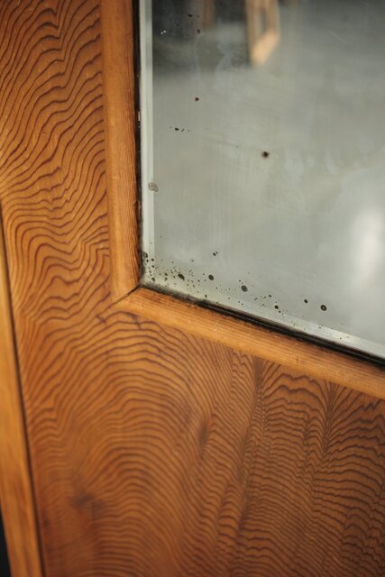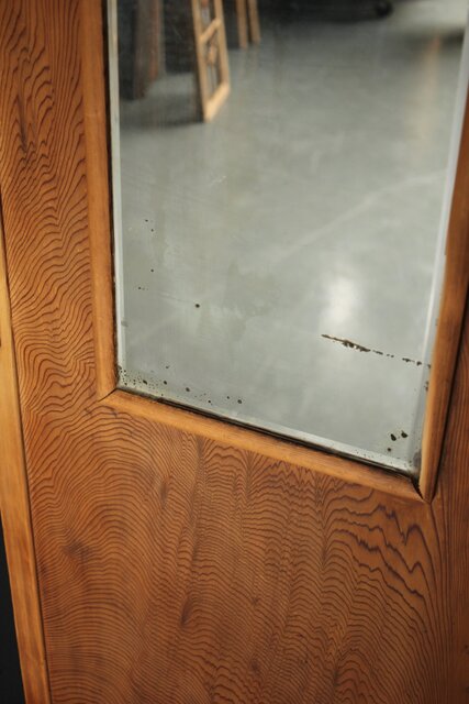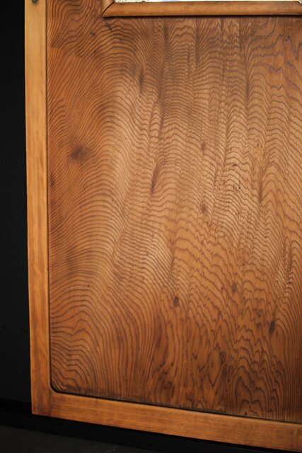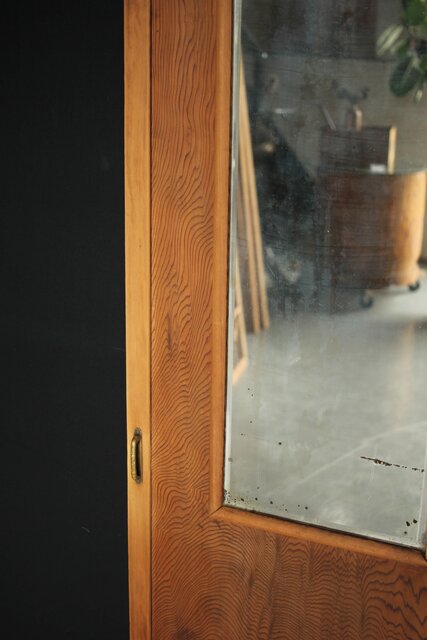 一枚板の扉の反対面に鏡が付いている建具
