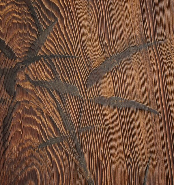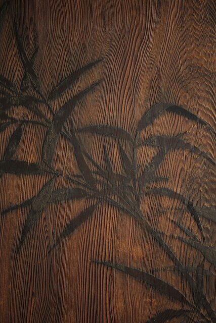 決まって砂ずり地に仕上げた鏡板に描き込んでいるものが多いですが 本作はうずくり