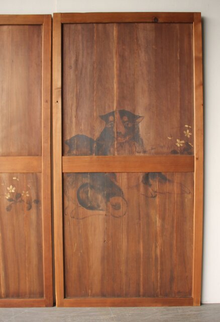 板絵建具 犬図 2枚1組 B1130