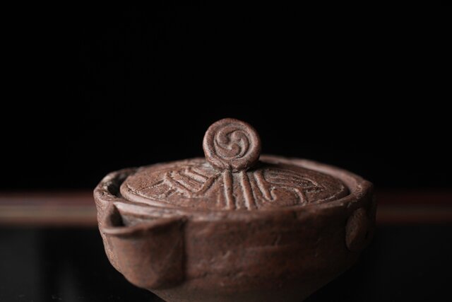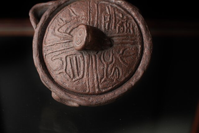 天面に篆刻をあしらった 雰囲気ある宝瓶です