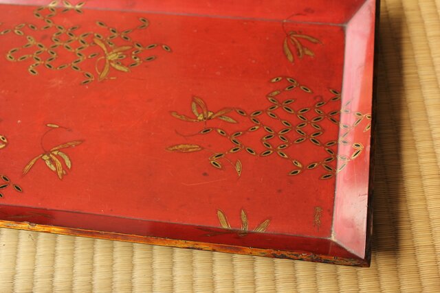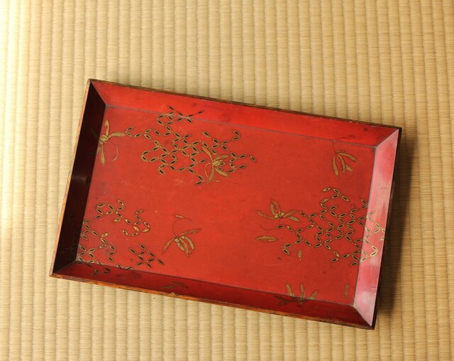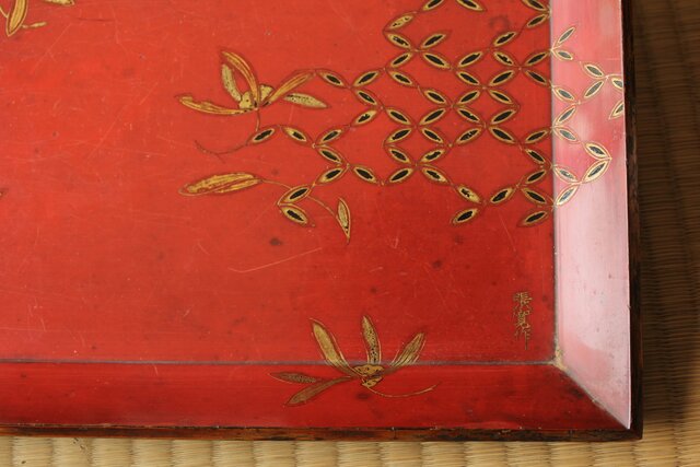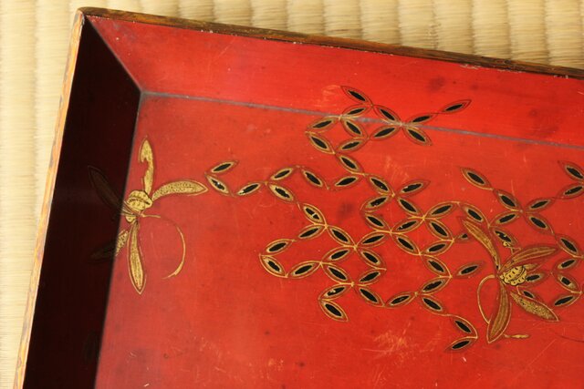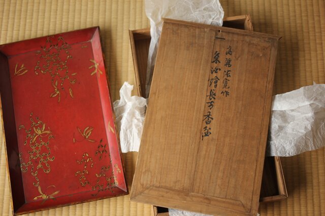 高麗張寛作 朱塗絵長方香盆 Q366