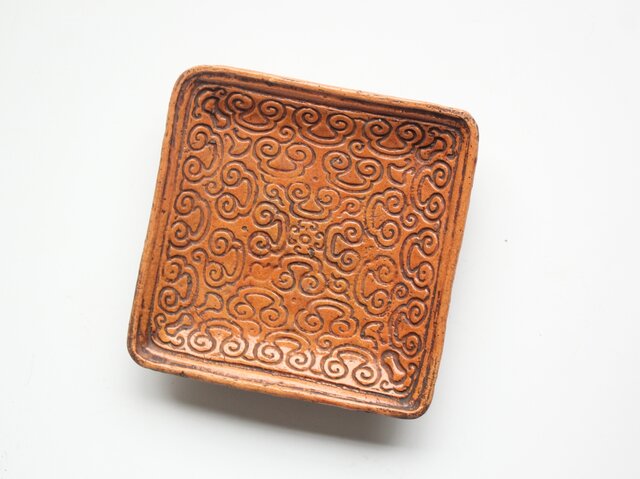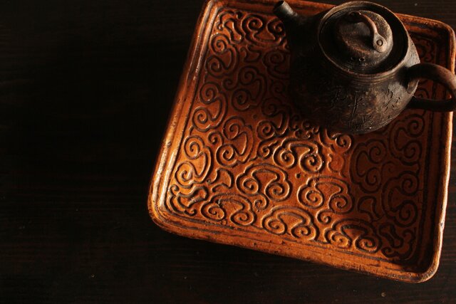 常滑焼 森下長蔵/朋親 屈輪文角皿 瓶座 P550