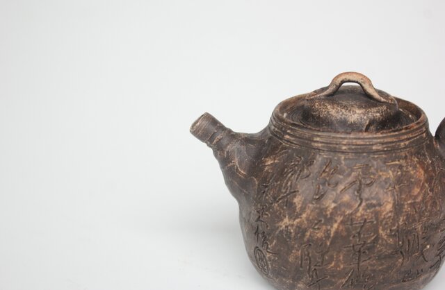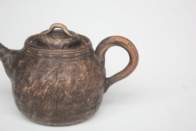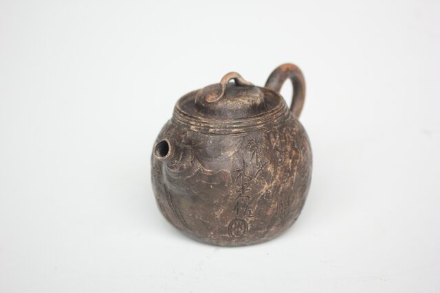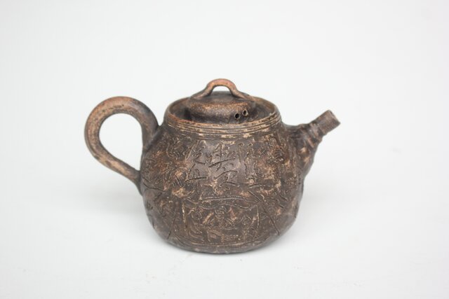倣 青木木米 漢詩彫 赤壁図 急須 P561