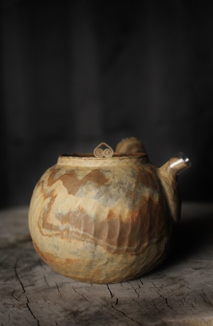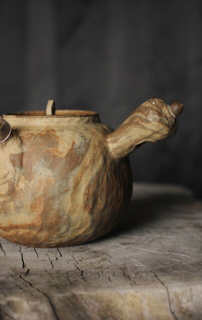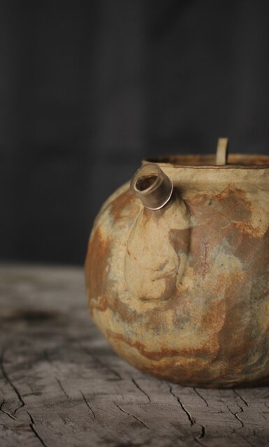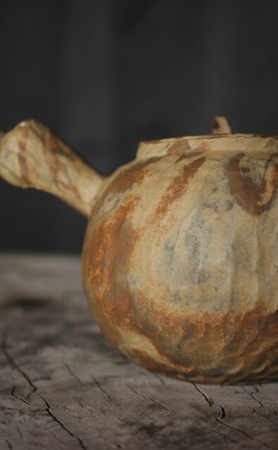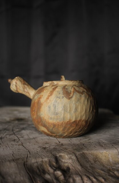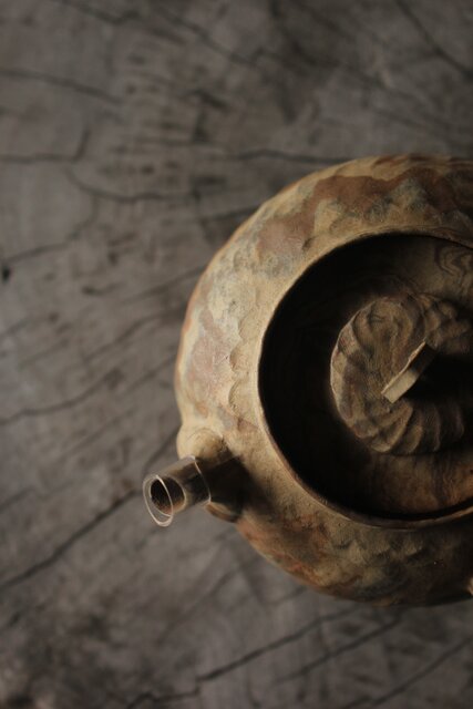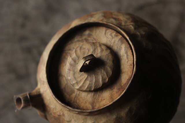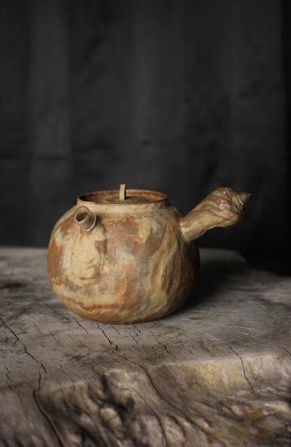 無眼楽 岡本城峯 萬古焼 手捻急須 共箱 P609