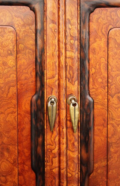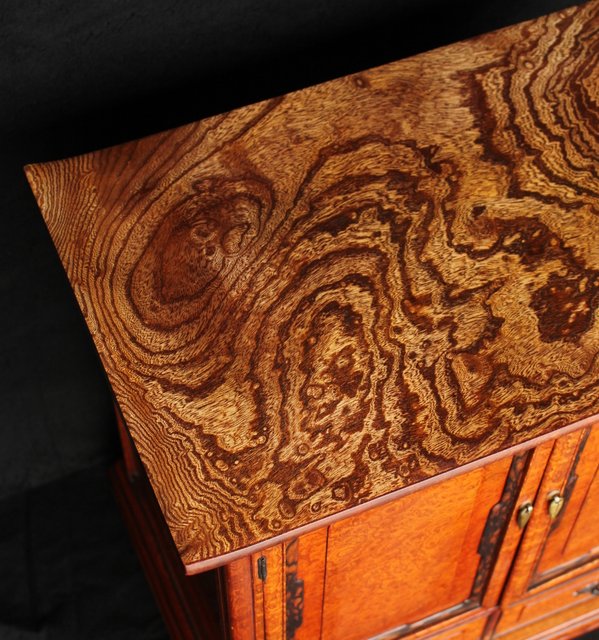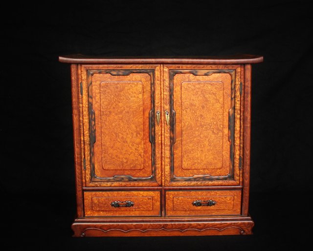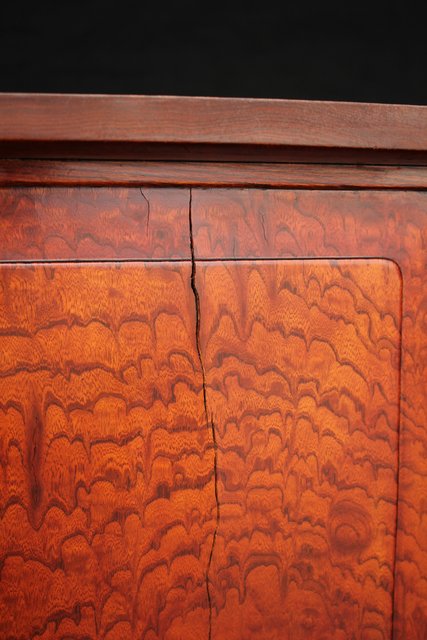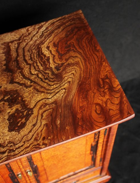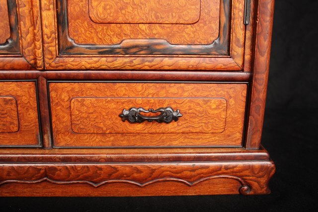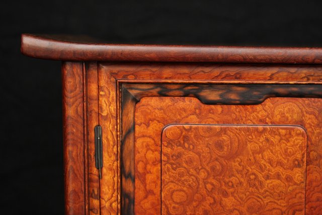 珠玉銘木 玉杢と黒柿の指物茶棚/器局 X121 表面扉の右側に多少反り 閉まります