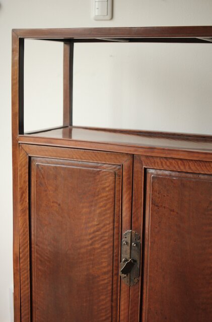 側面や棚には縮杢が見られ 非常に身が詰まっている様子です そのため全体的にかなり重量があります
