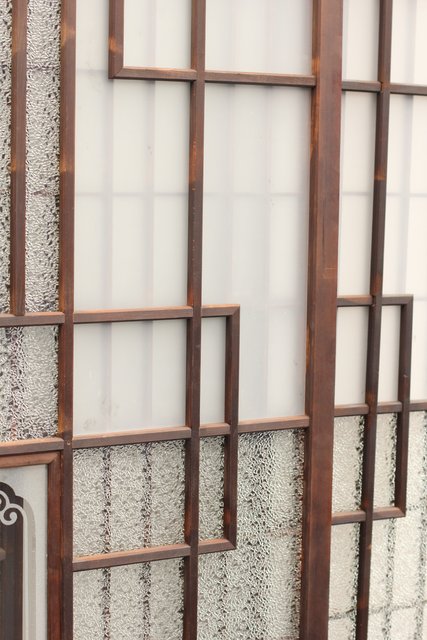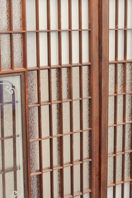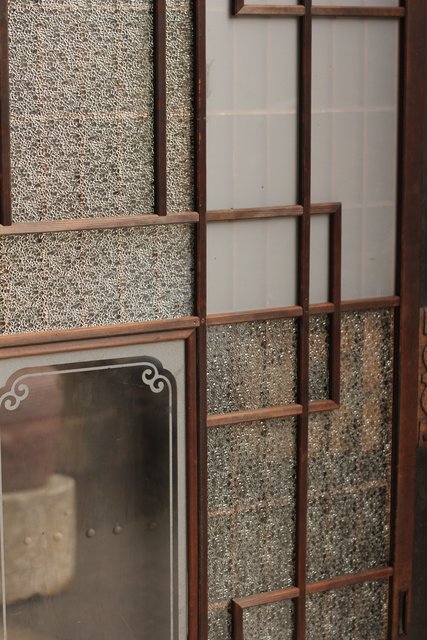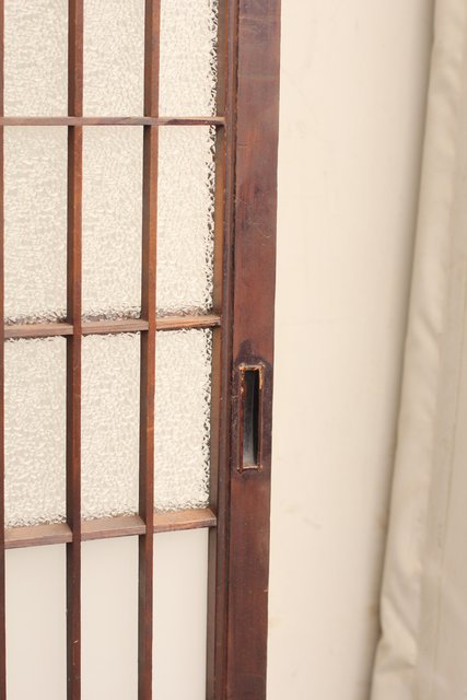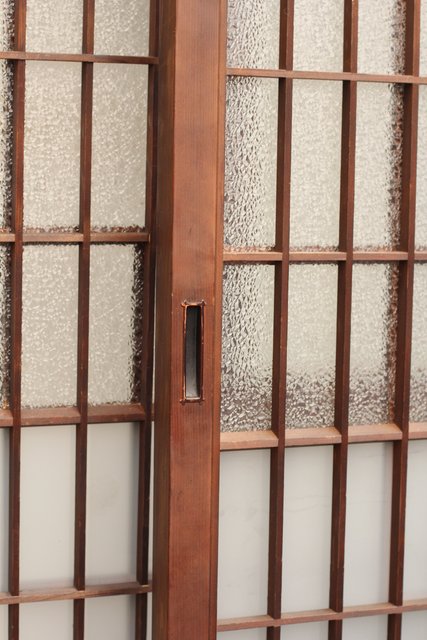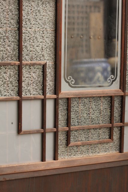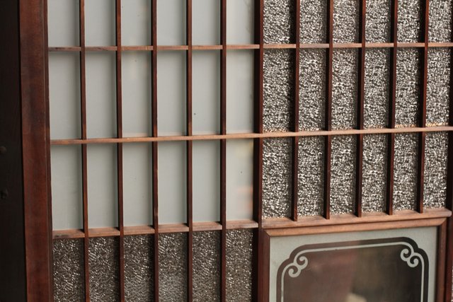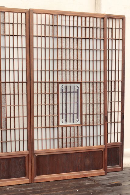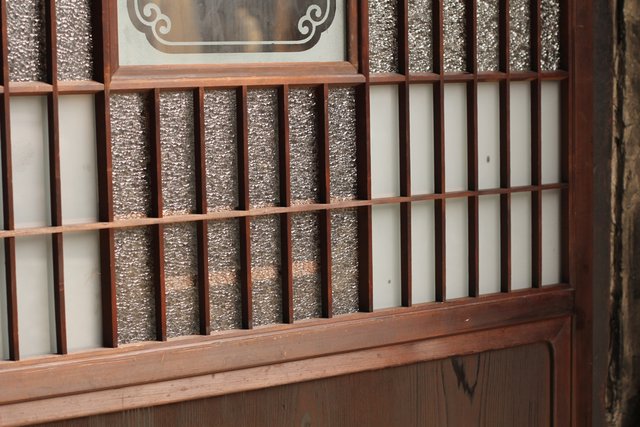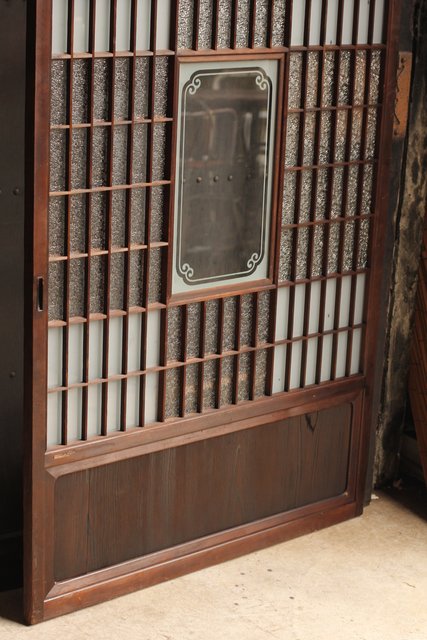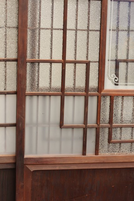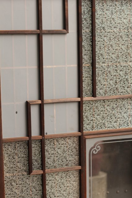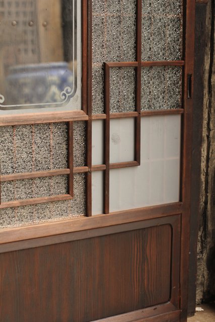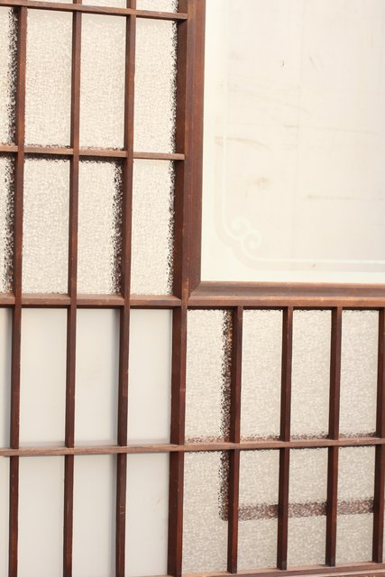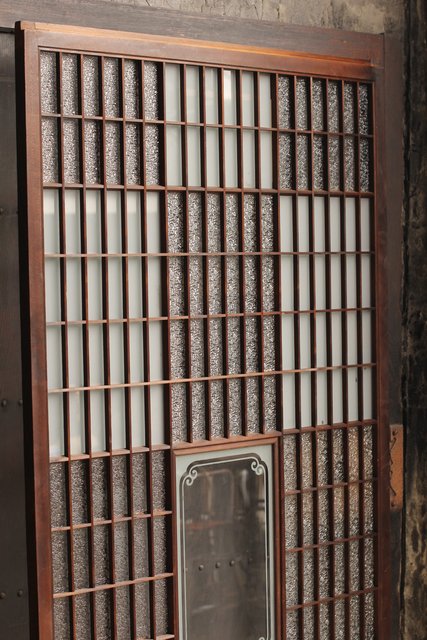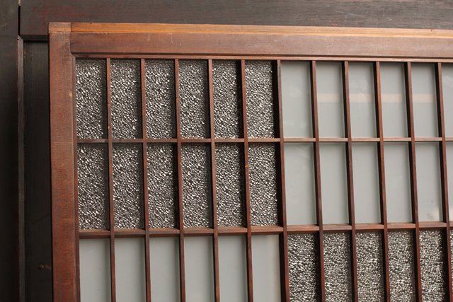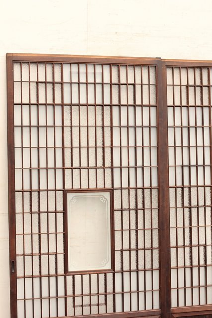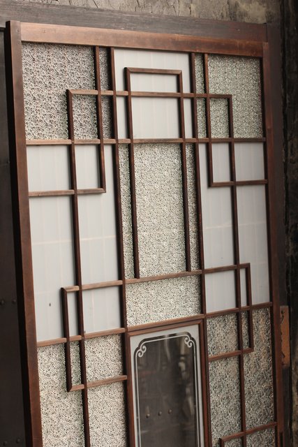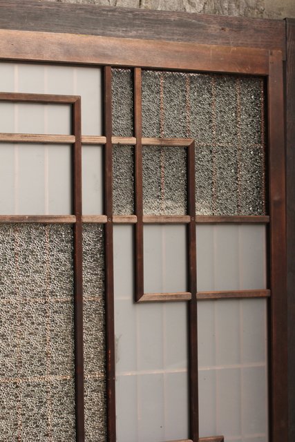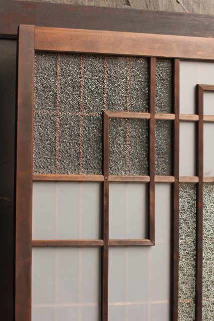 桟がうまいこと組んであり 背面から見ると全く違ったデザインの硝子戸に