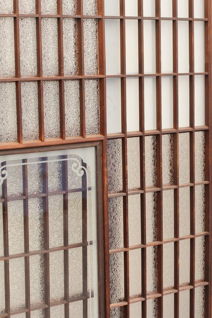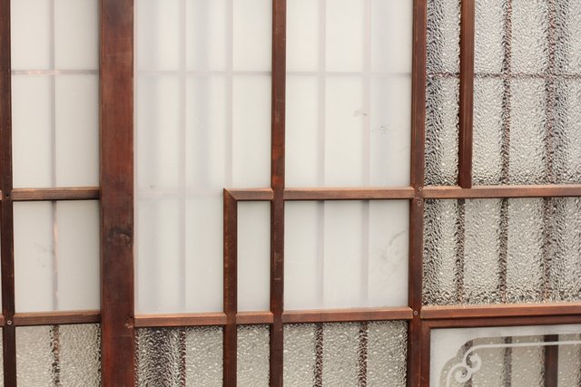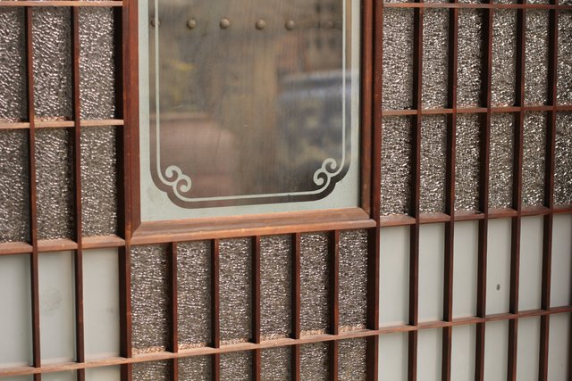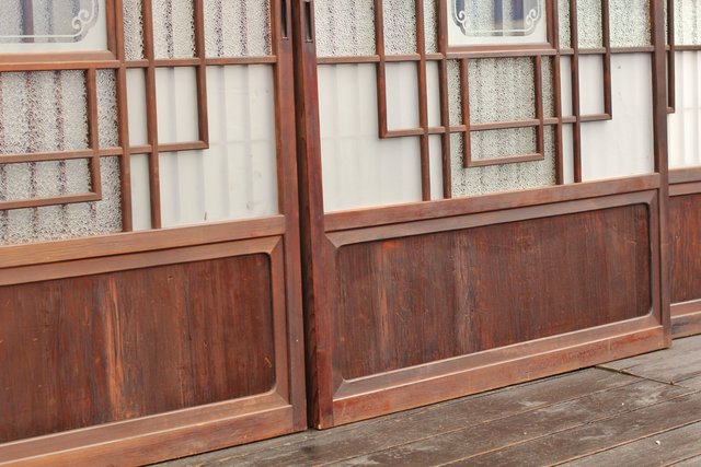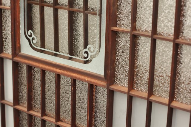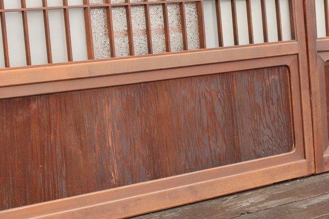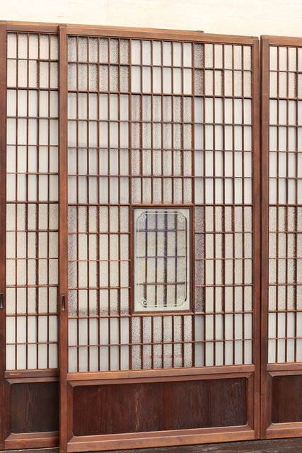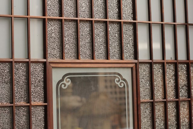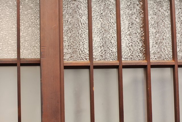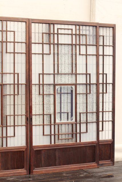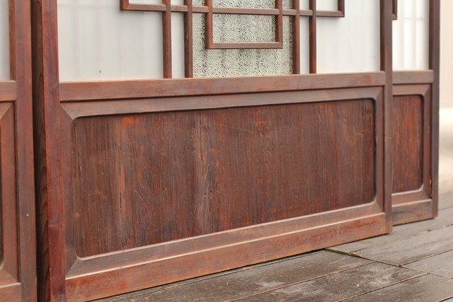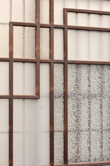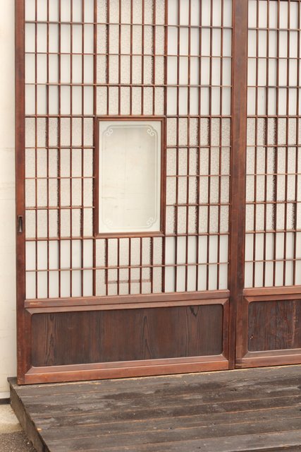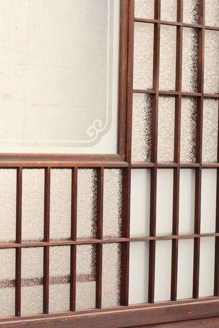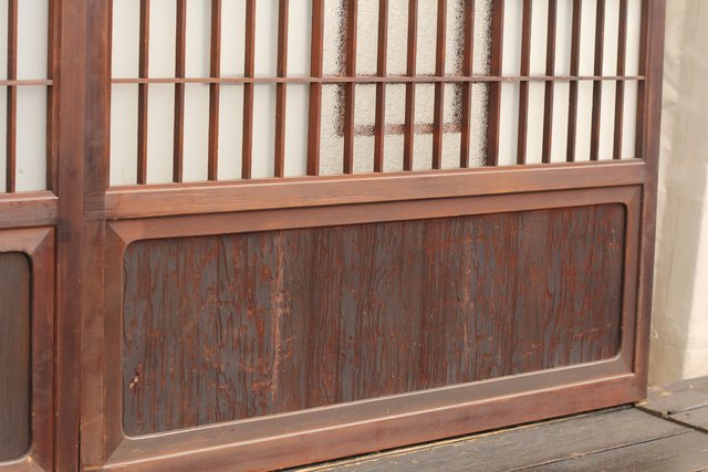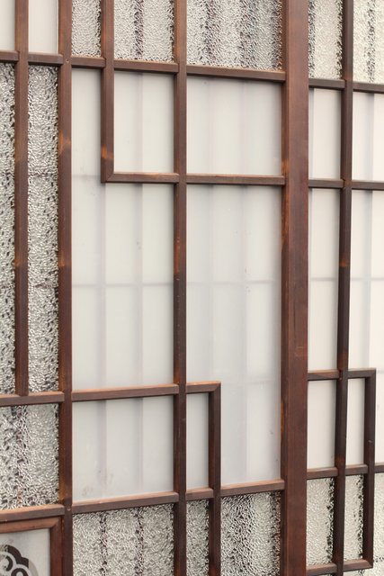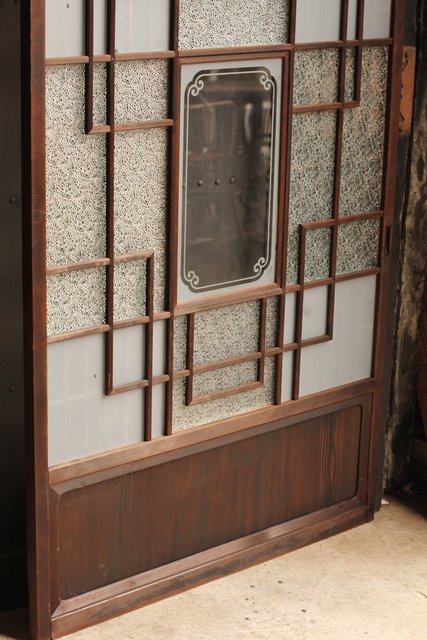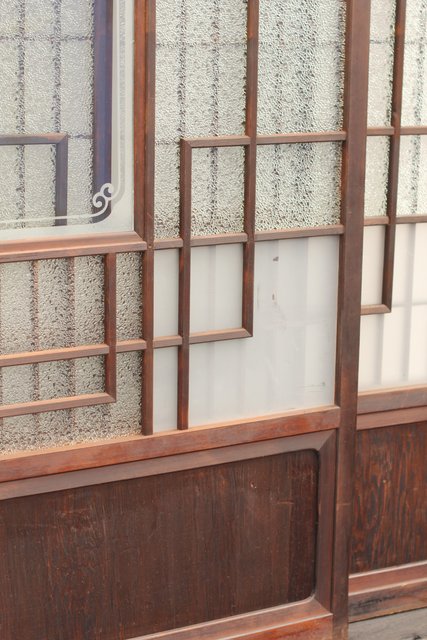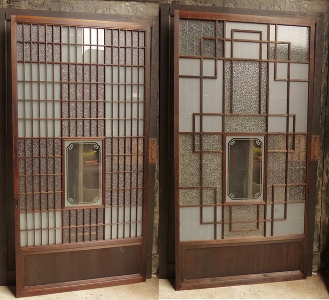 桟がうまいこと組んであり 背面から見ると全く違ったデザインの硝子戸に