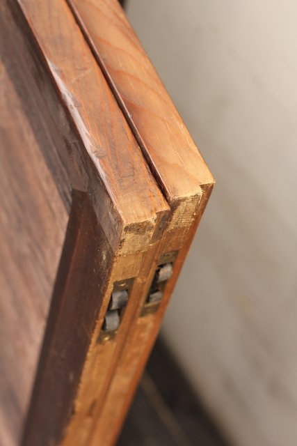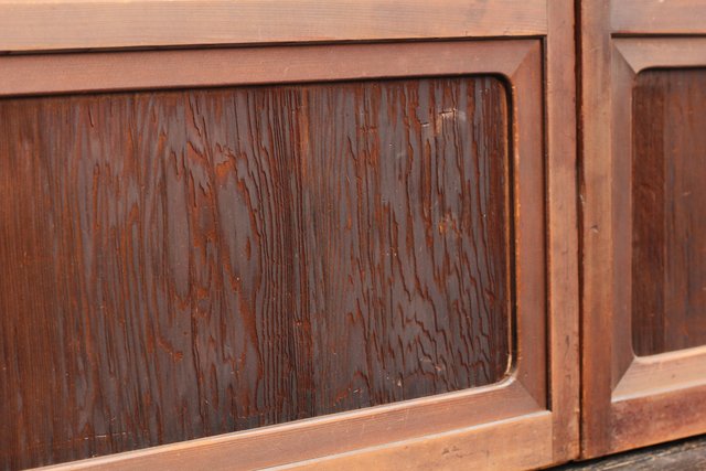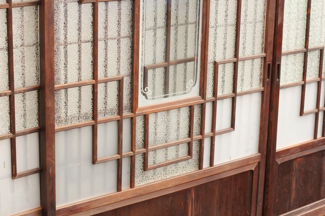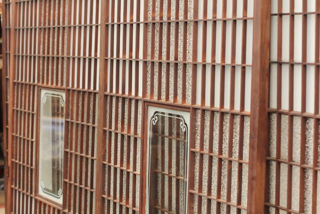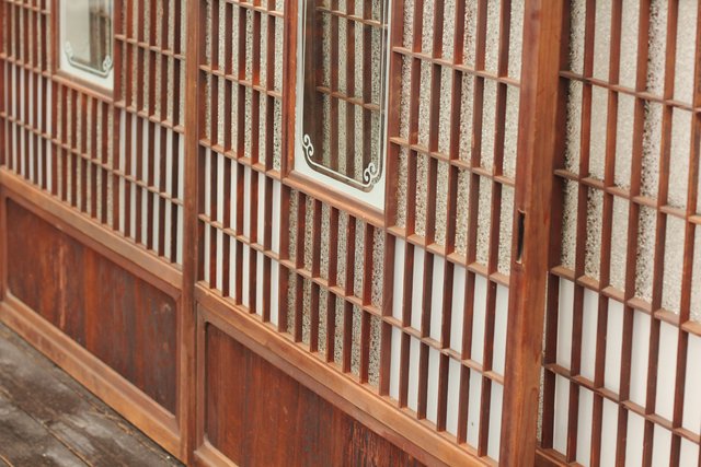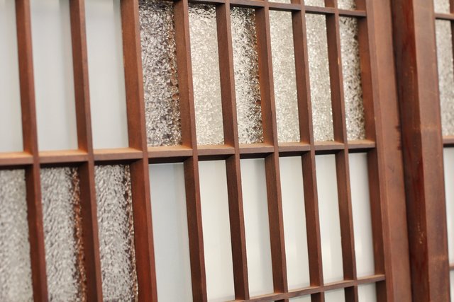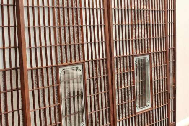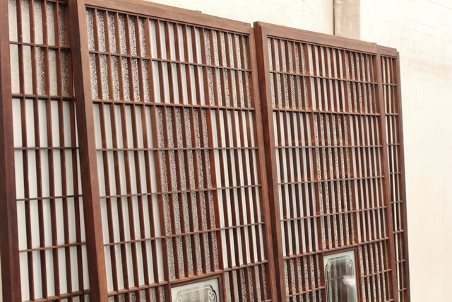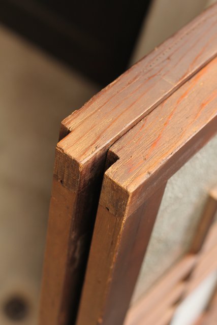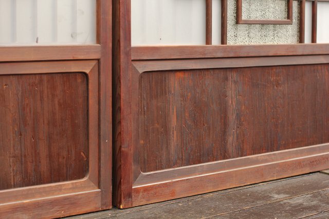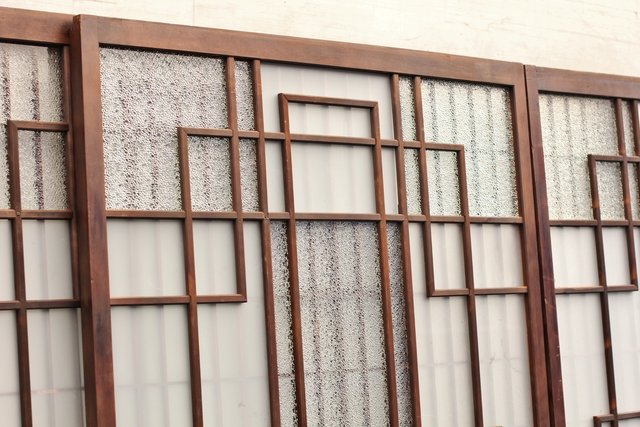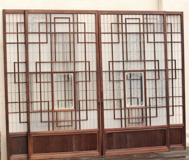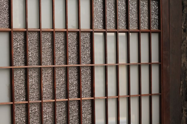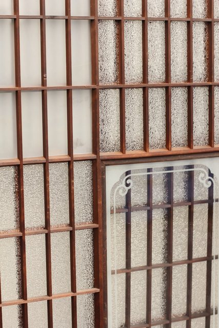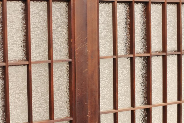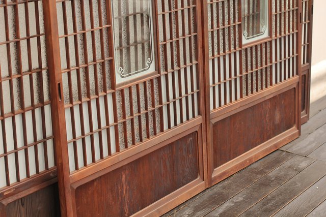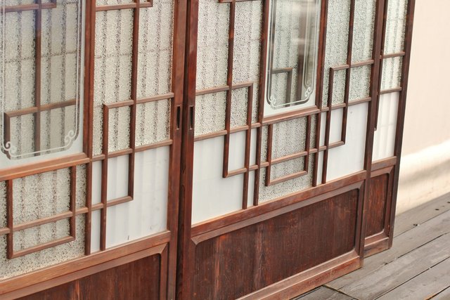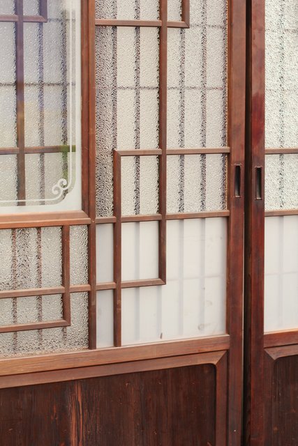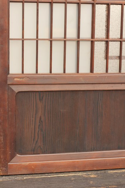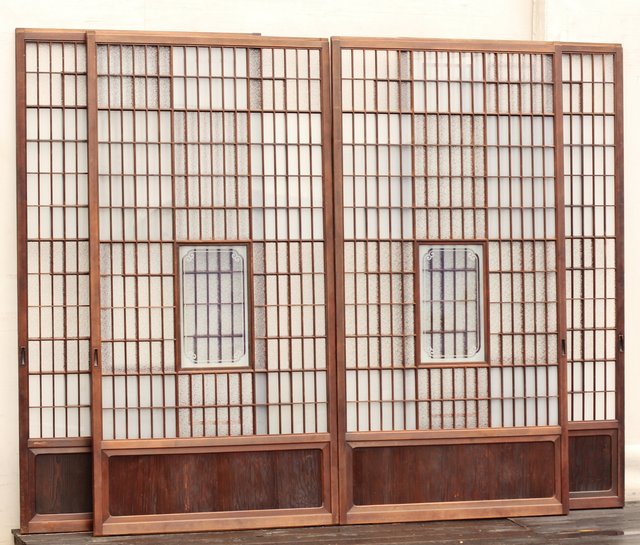 桟がうまいこと組んであり 背面から見ると全く違ったデザインの硝子戸に