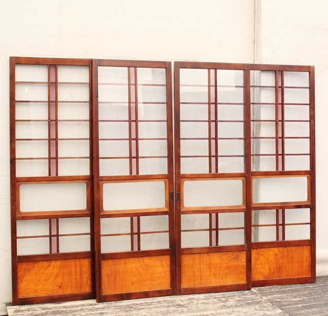 ピンクニカワガラスの障子風硝子戸 4枚1組 GD739