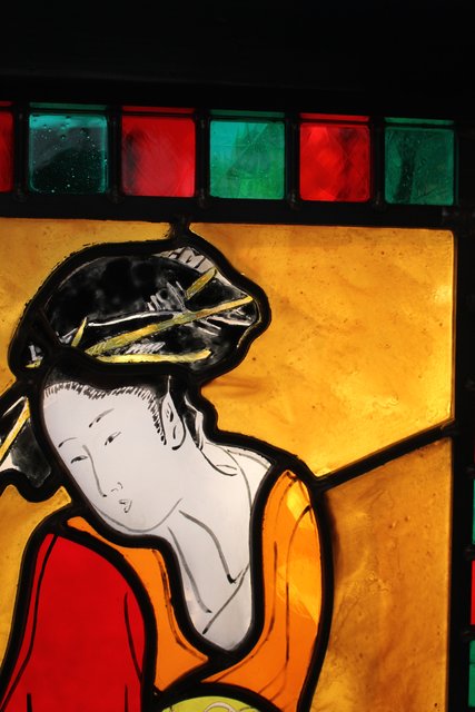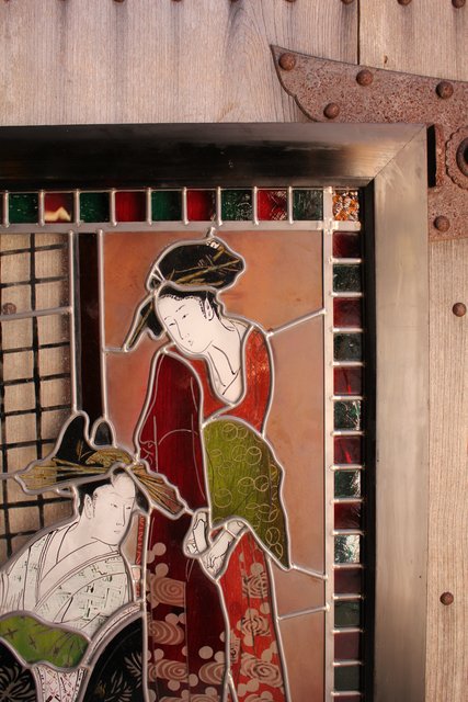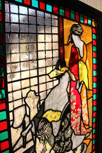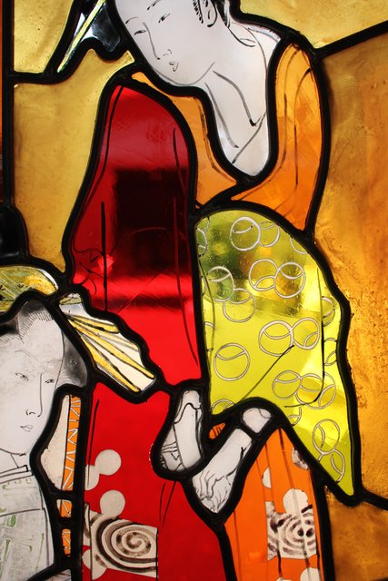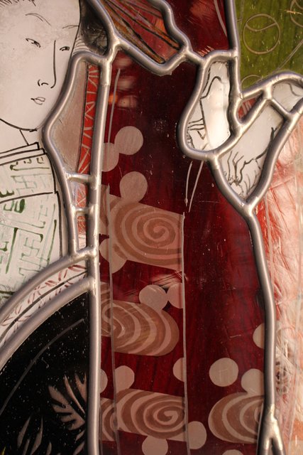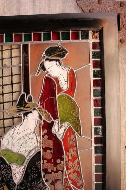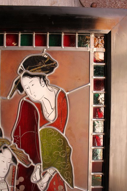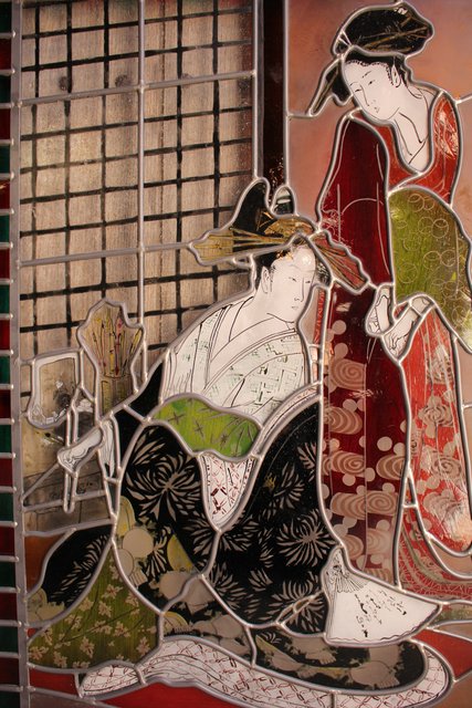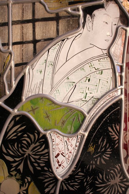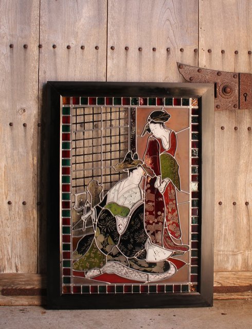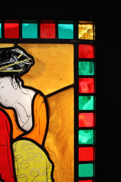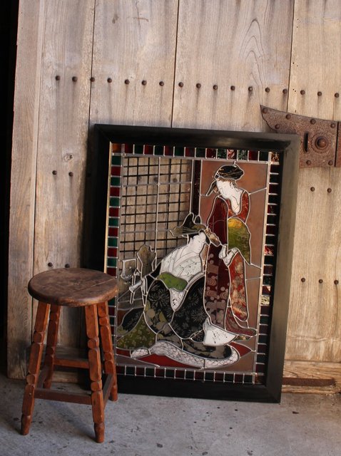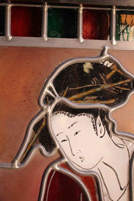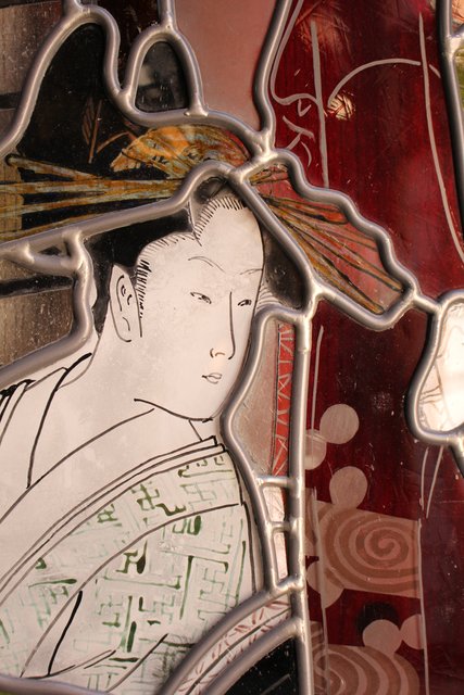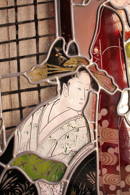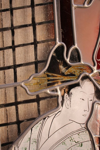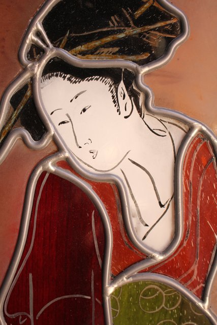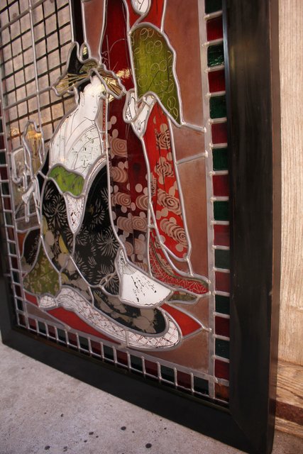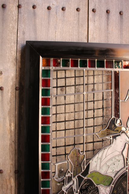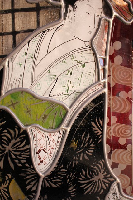 絵付けと腐食硝子の芸者ステンドガラス GD767