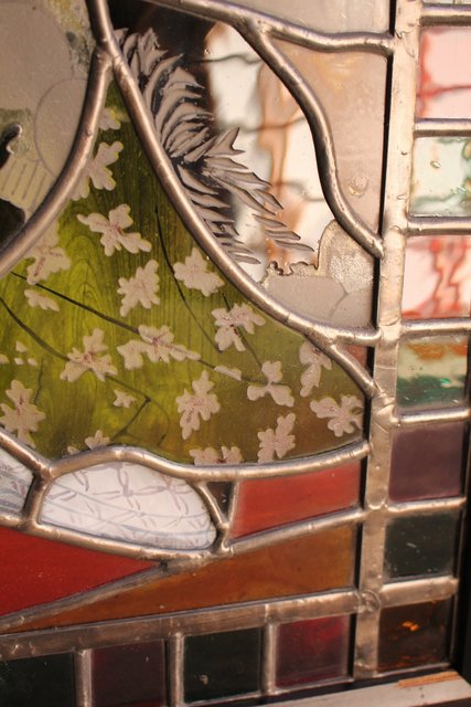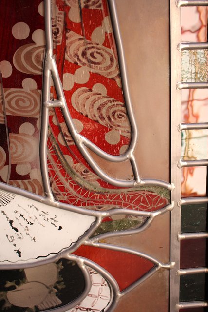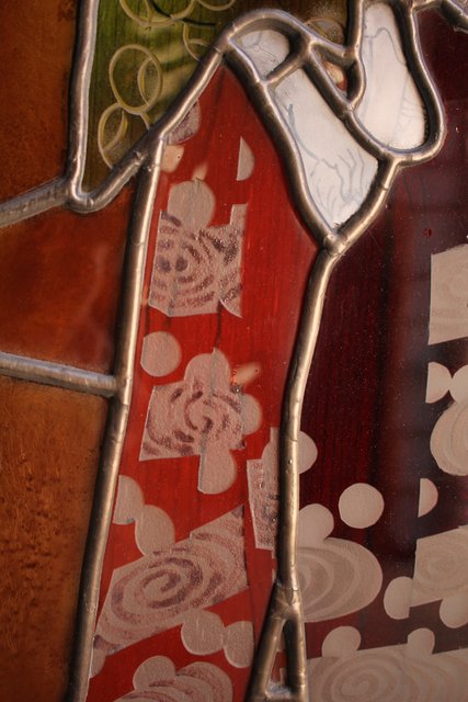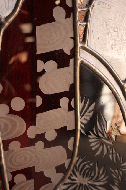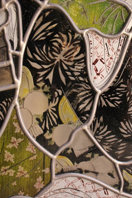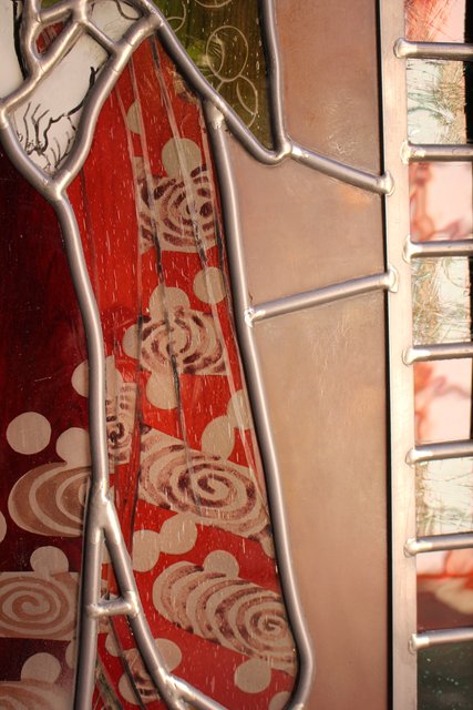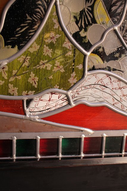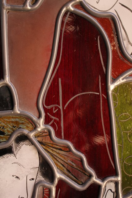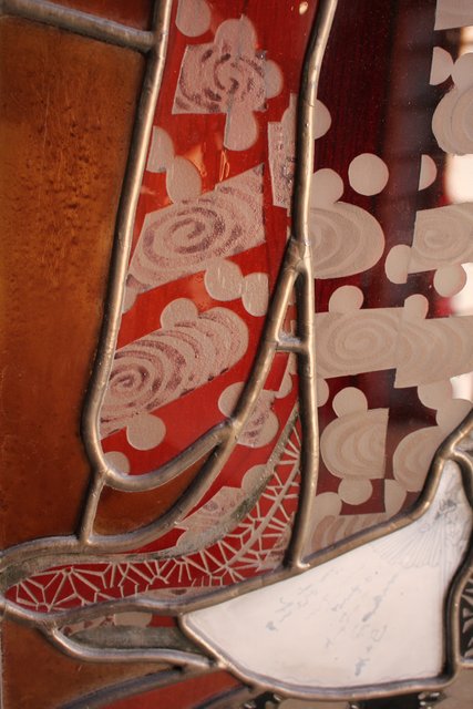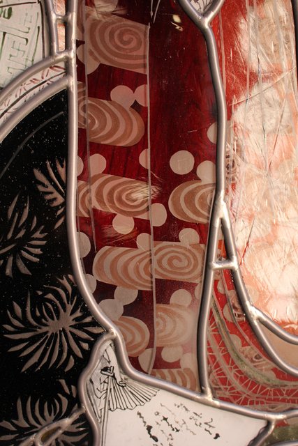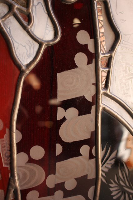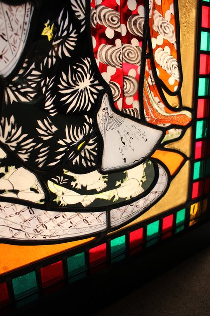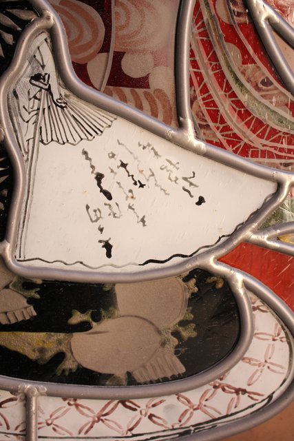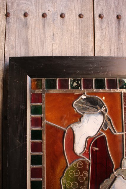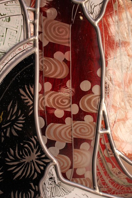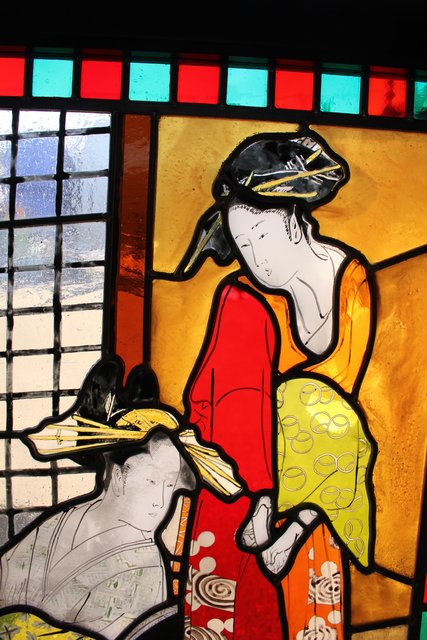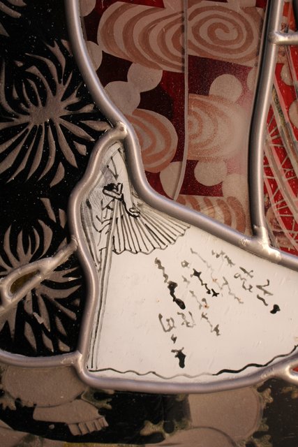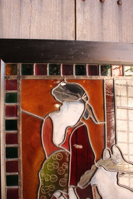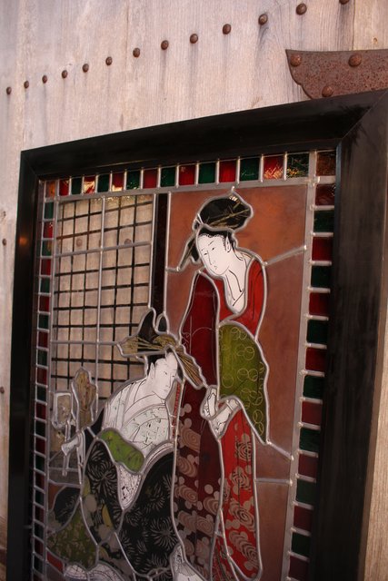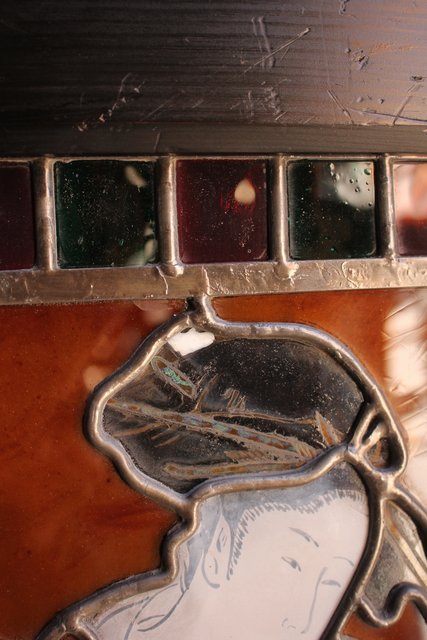 絵付けと腐食硝子の芸者ステンドガラス GD767