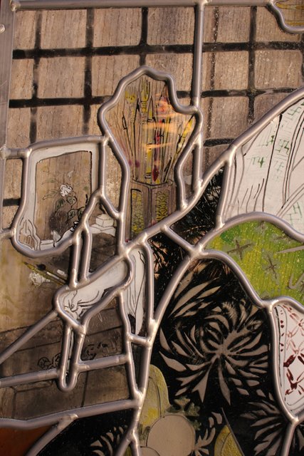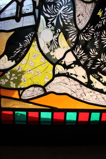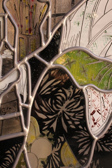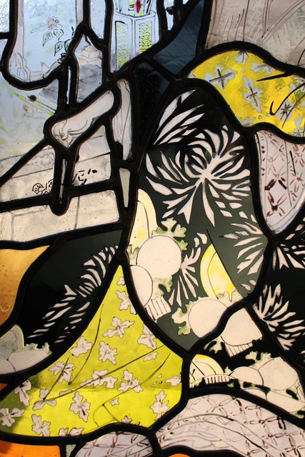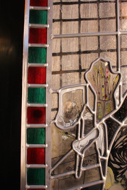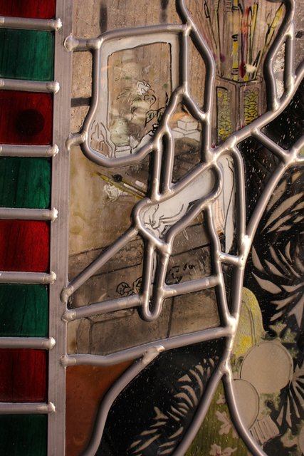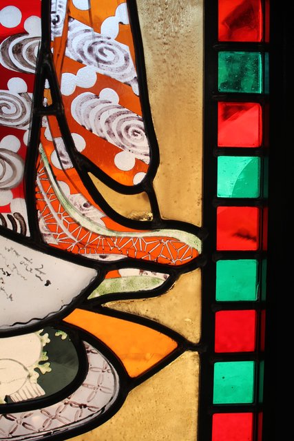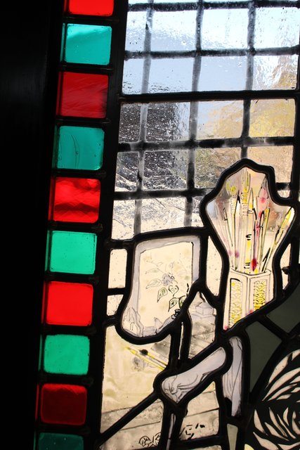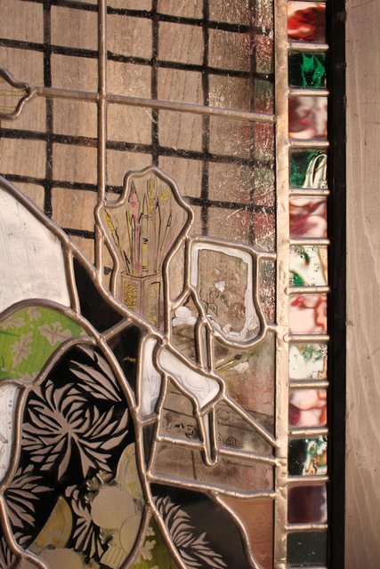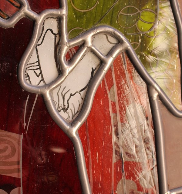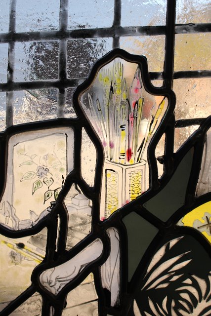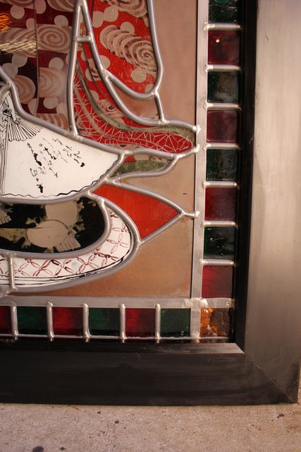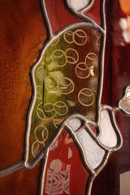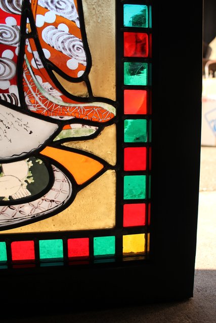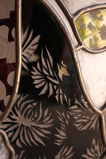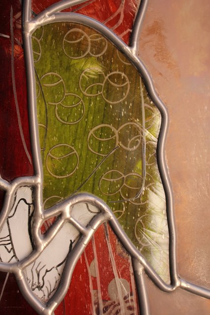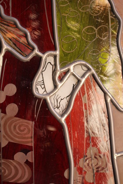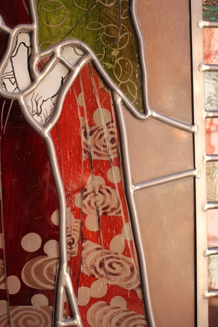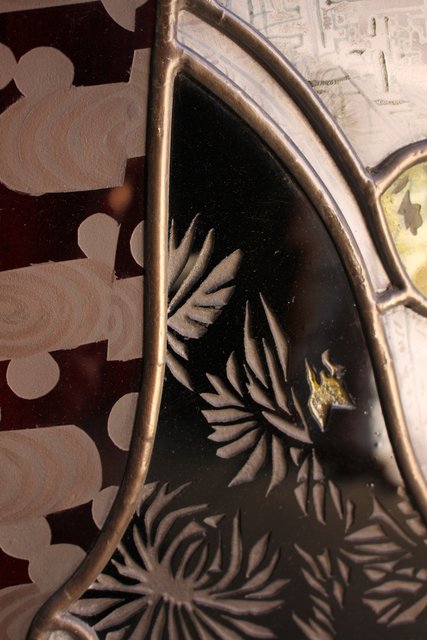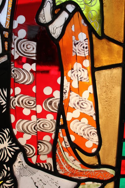 絵付けと腐食硝子の芸者ステンドガラス GD767