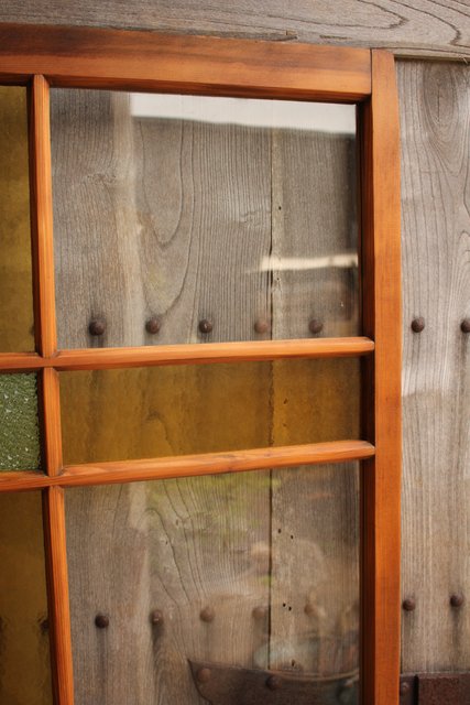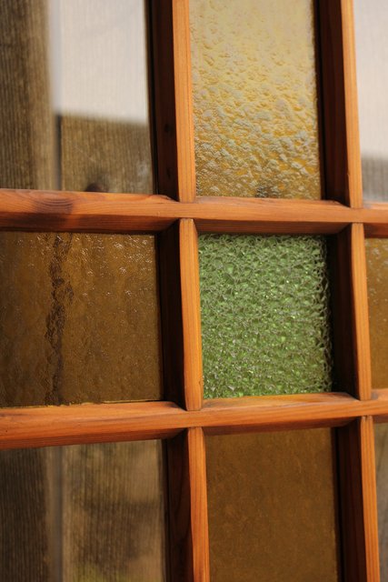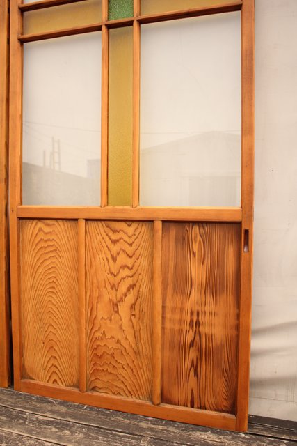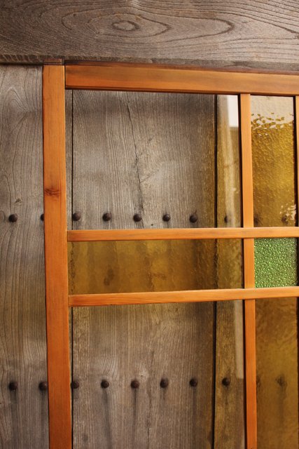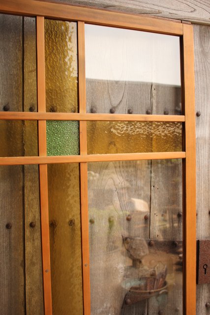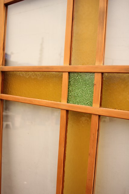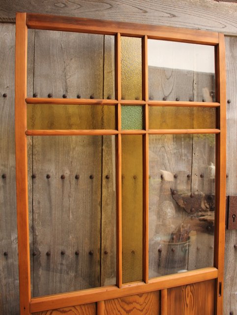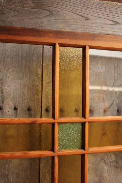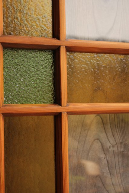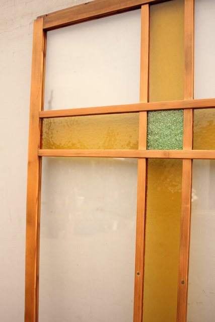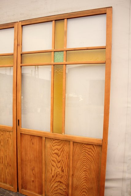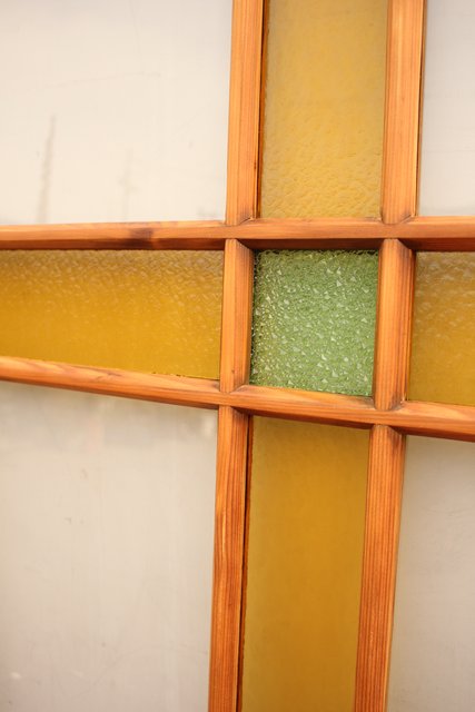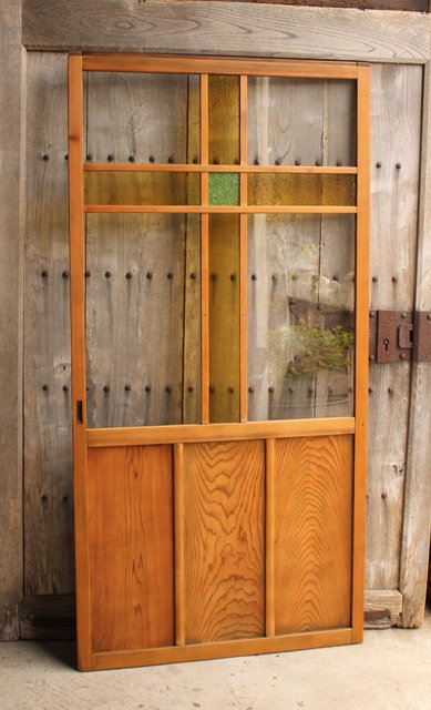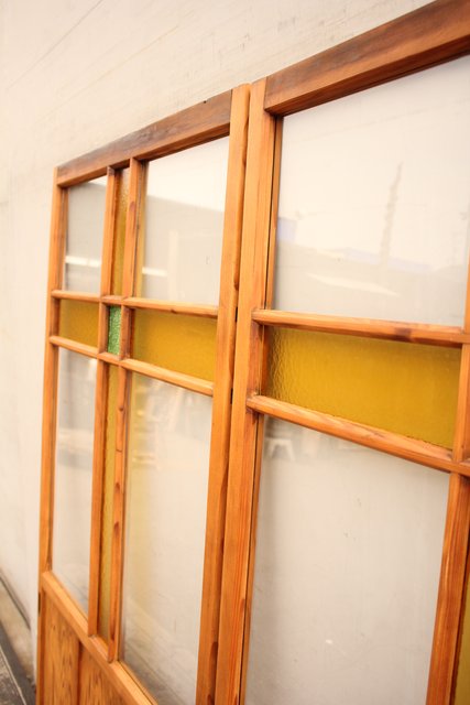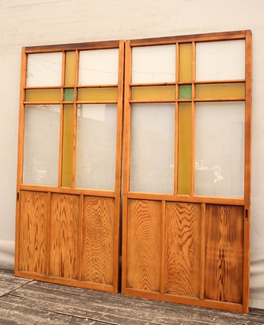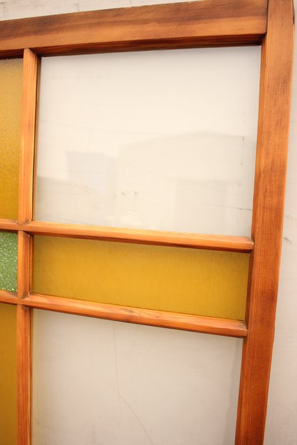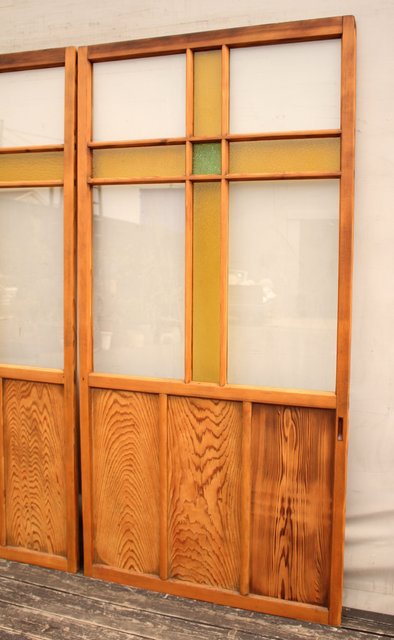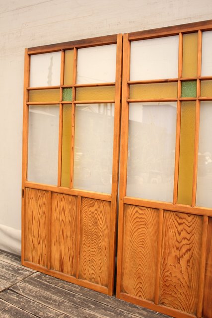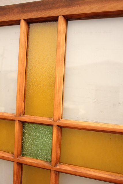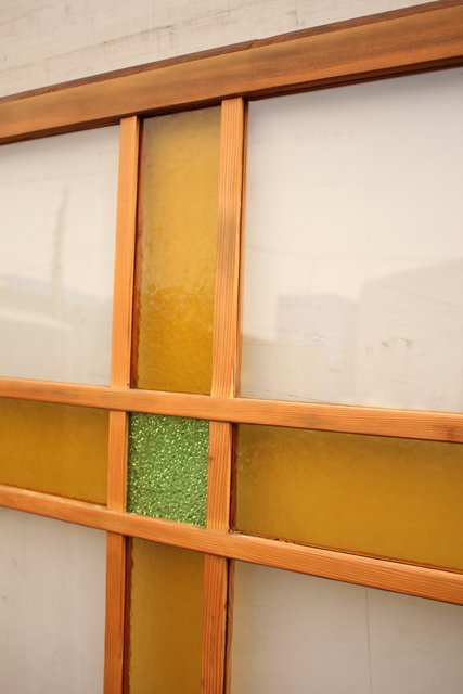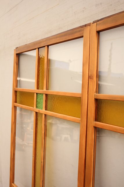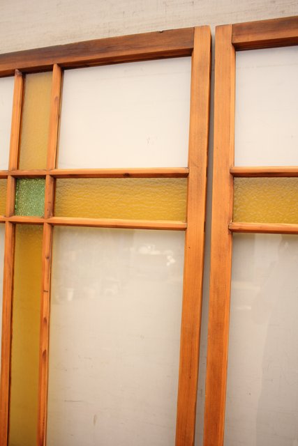 黄色と緑の色ガラス戸 2枚1組 GD812