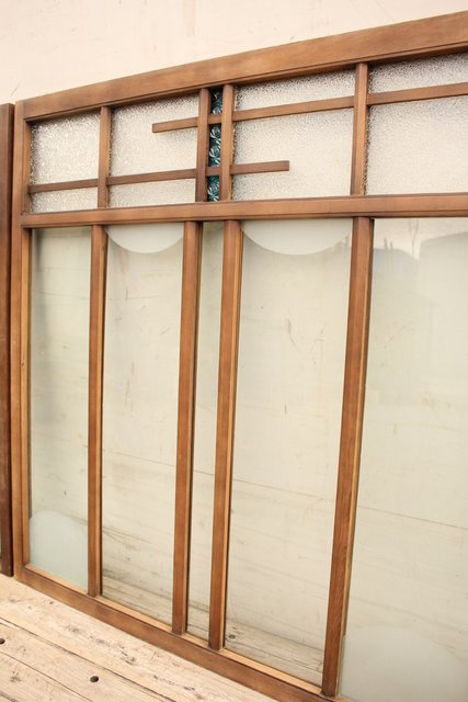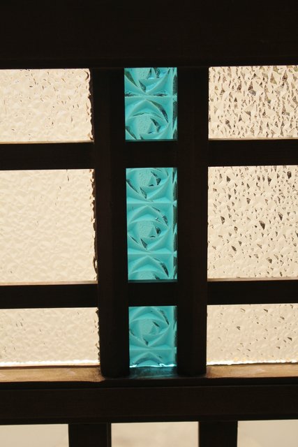 青色プレスガラスの小型窓/ガラス戸 2枚1組 GD952