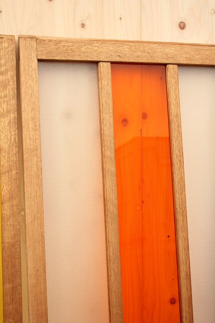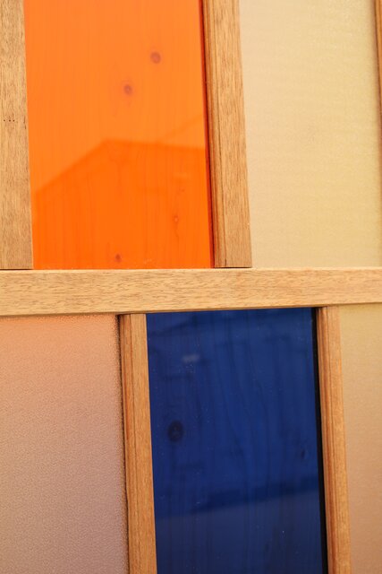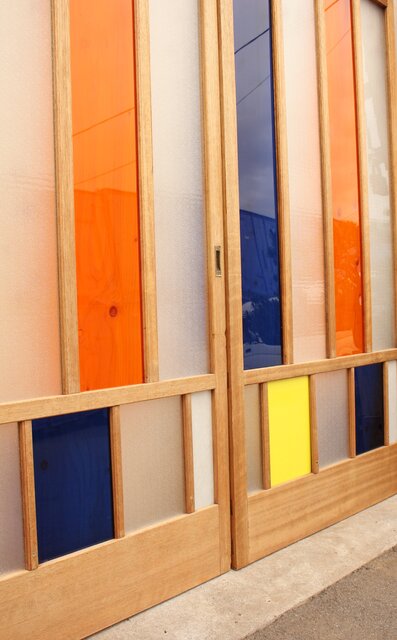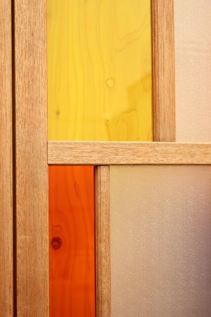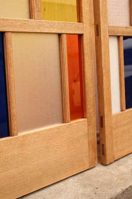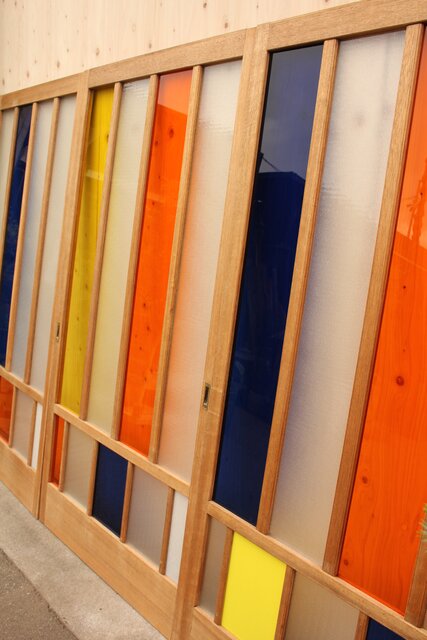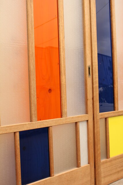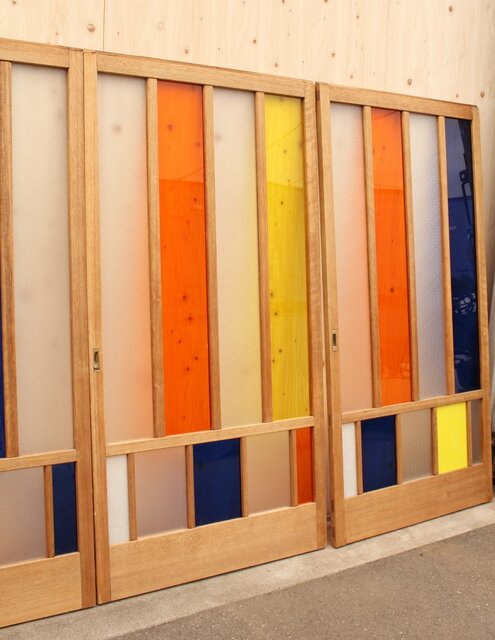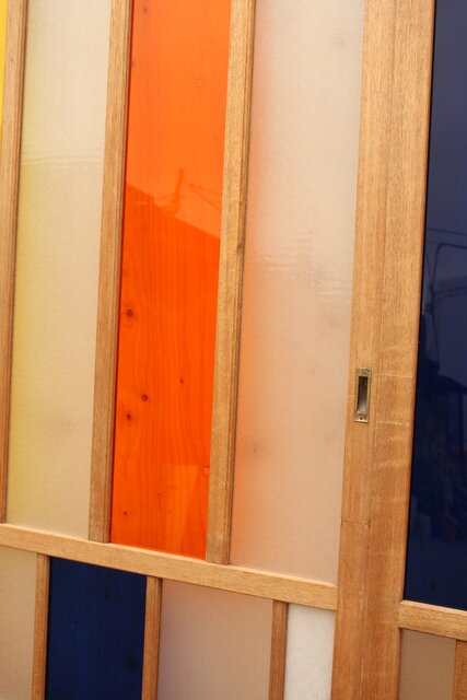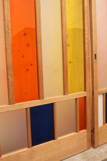 色とりどりのアクリル板を使用した 遊び心あふれる建具