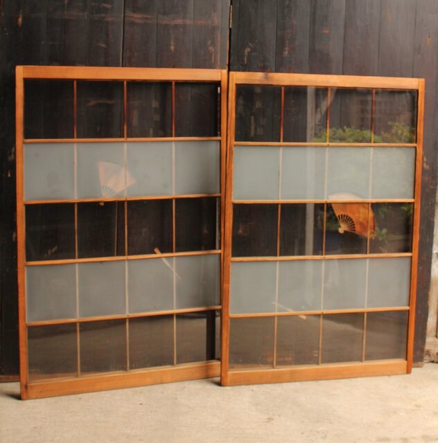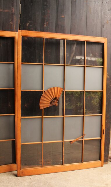 扇子模様中型建具/窓 2枚1組 GD968 縞々になるように ガラス配置