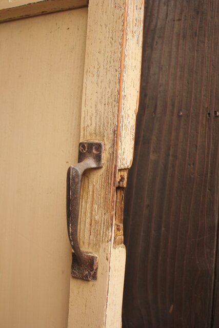 片面が白いペンキを塗りっぱなしの雰囲気ある建具