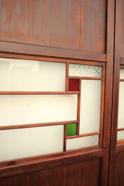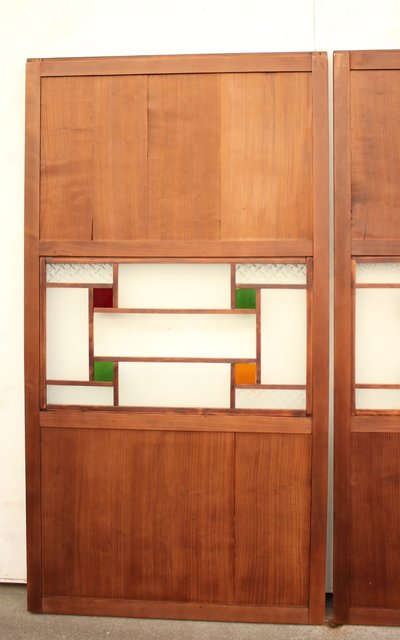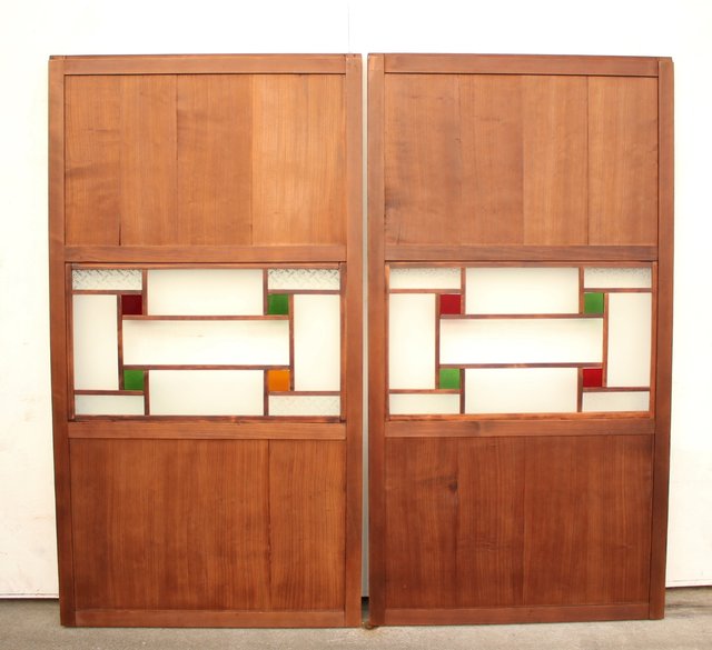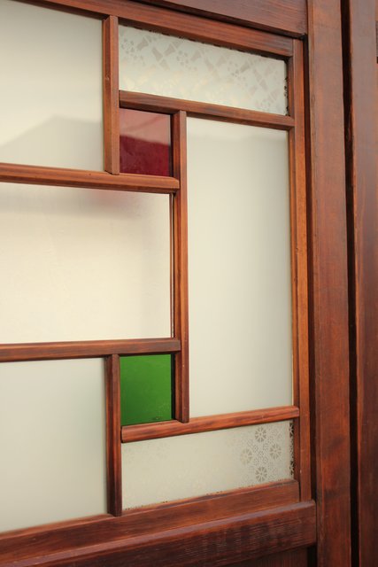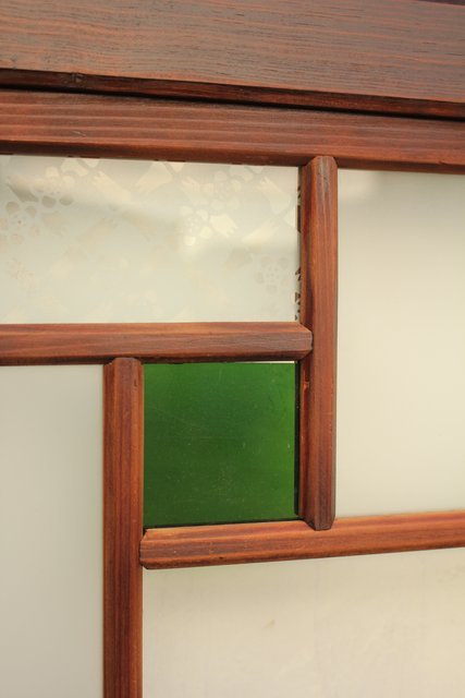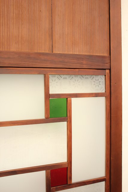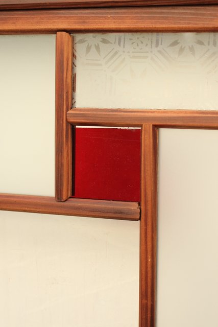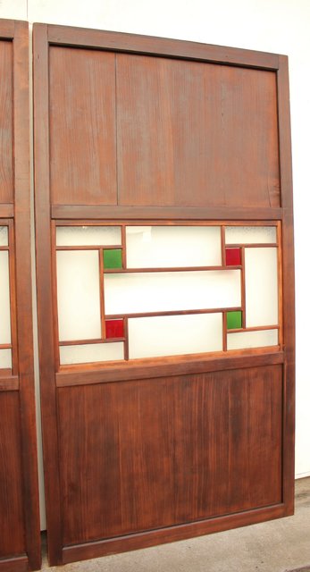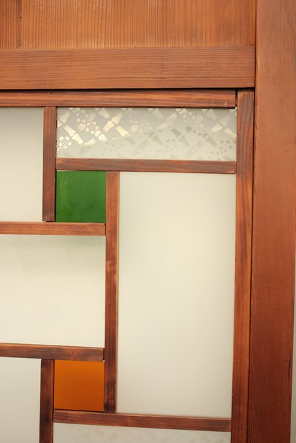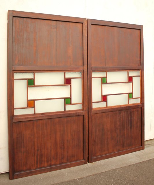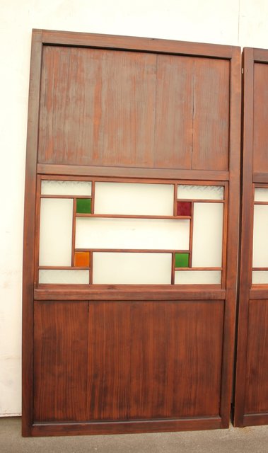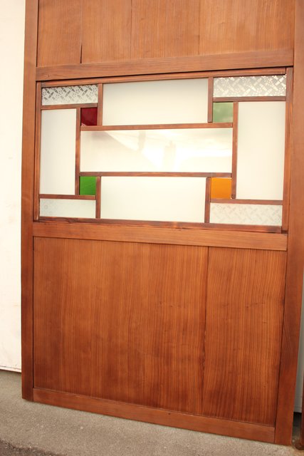 細分色ガラス建具 2枚1組 GD1043 ※ガラス枠が少々乾燥気味で縮んでいる様子