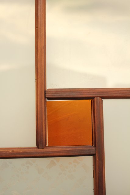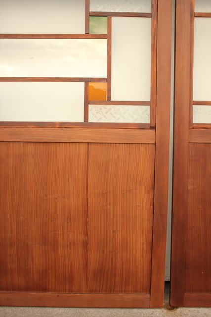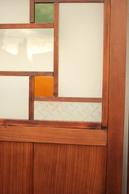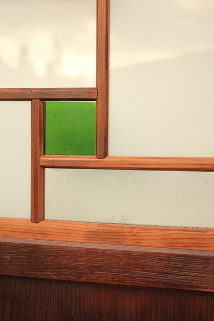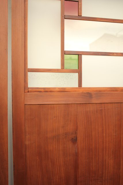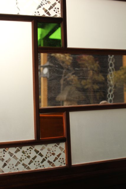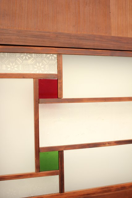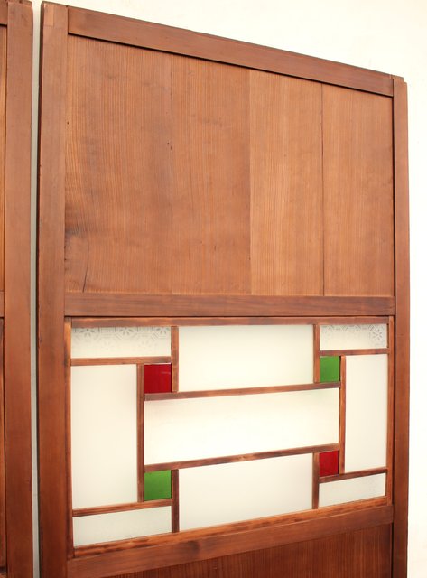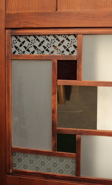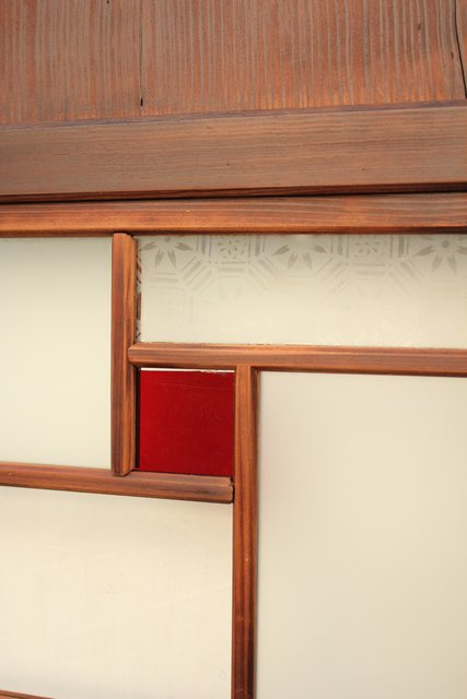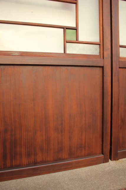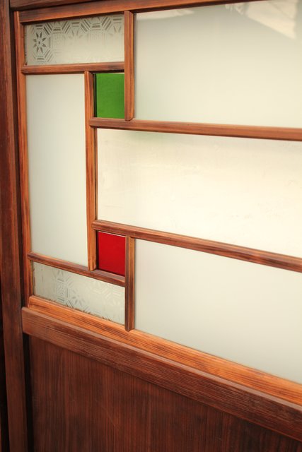細分色ガラス建具 2枚1組 GD1043 ※ガラス枠が少々乾燥気味で縮んでいる様子
