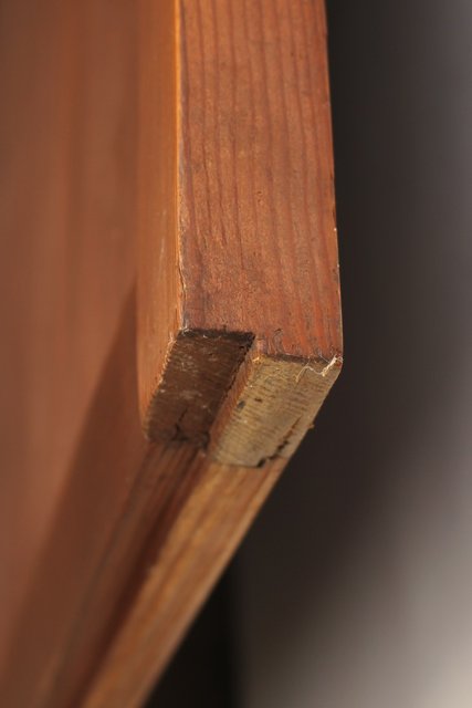 ガラス枠が少々乾燥気味で縮んでいる様子