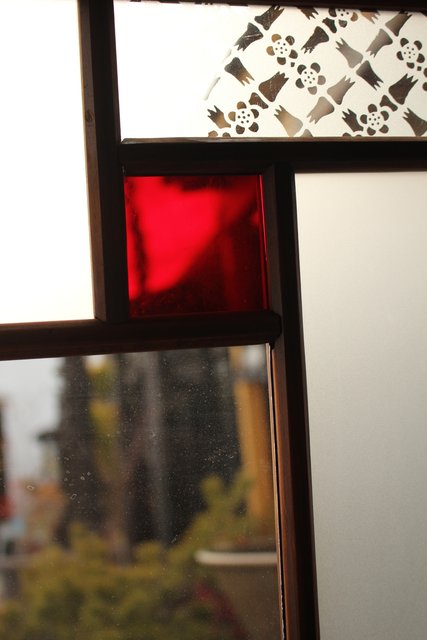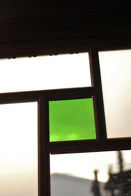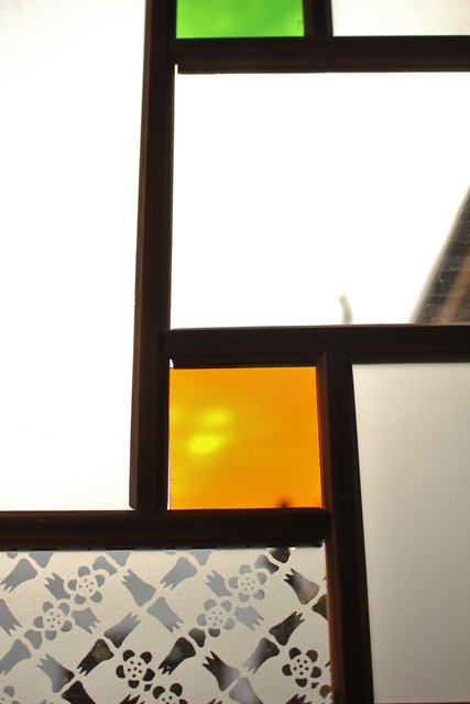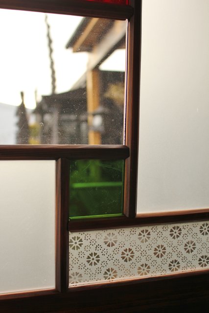 赤や黄色・緑の色ガラスから素敵な光がのぞきます