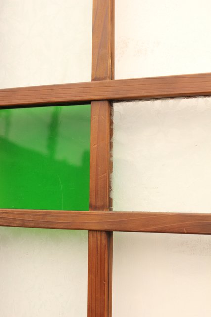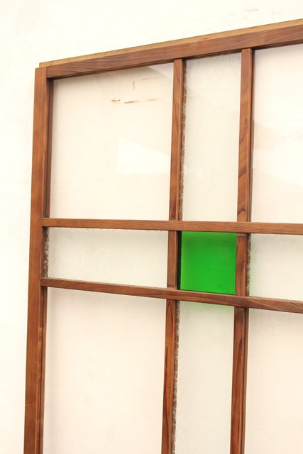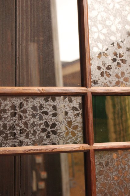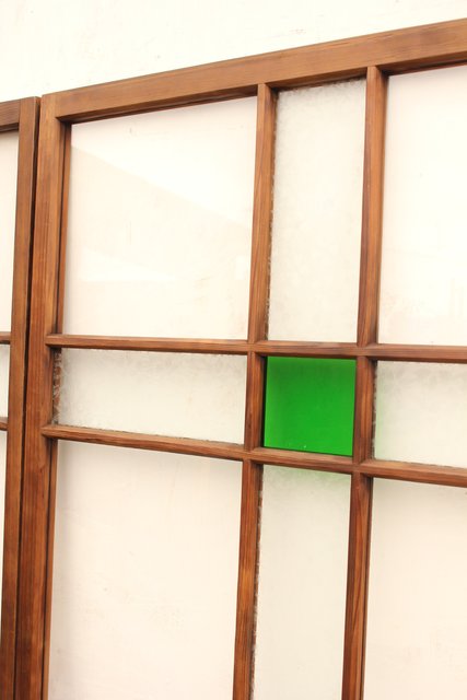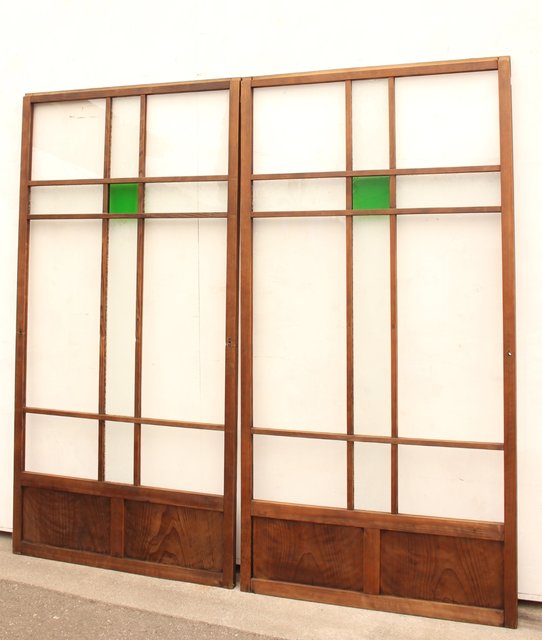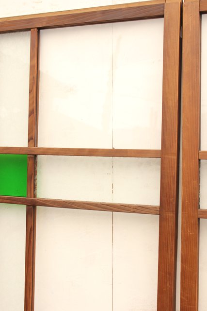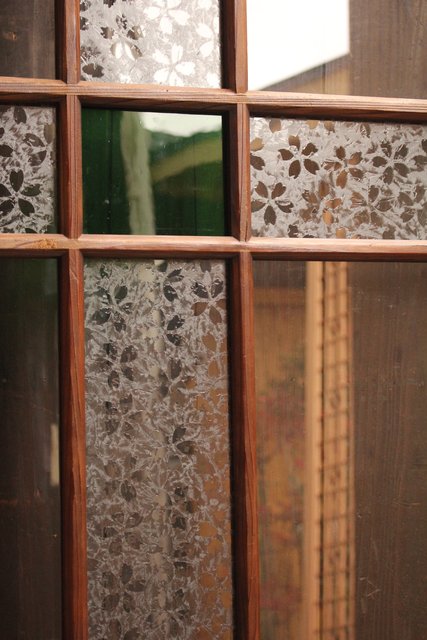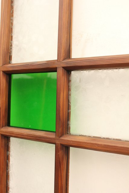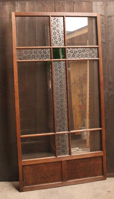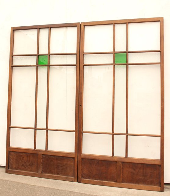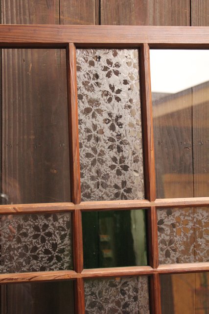 桜模様と緑色ガラスの建具 2枚1組 GD1050