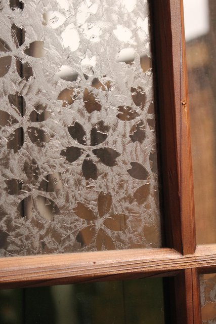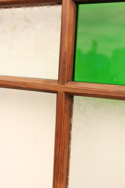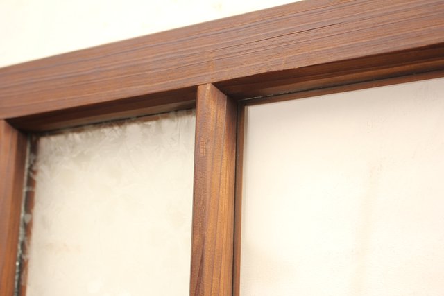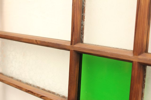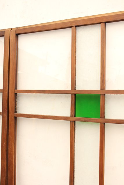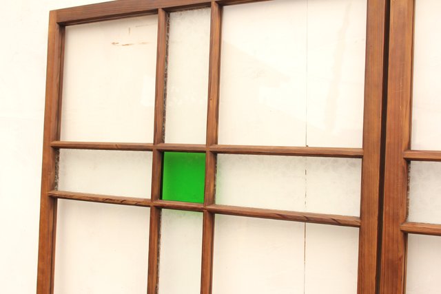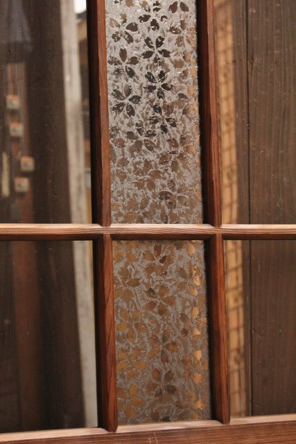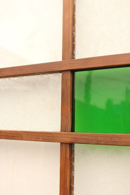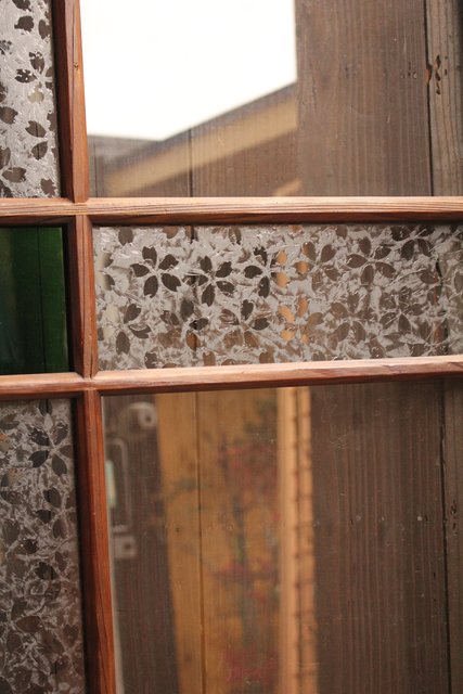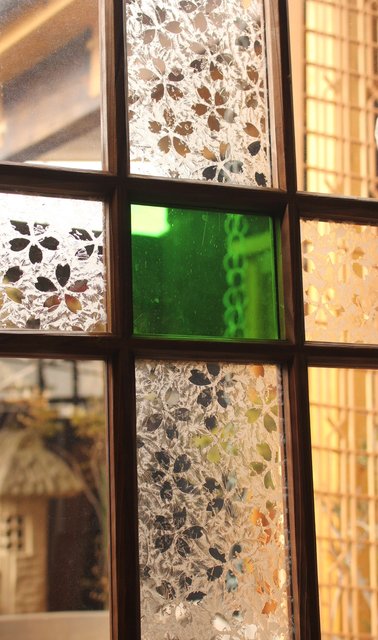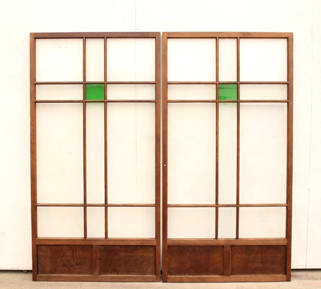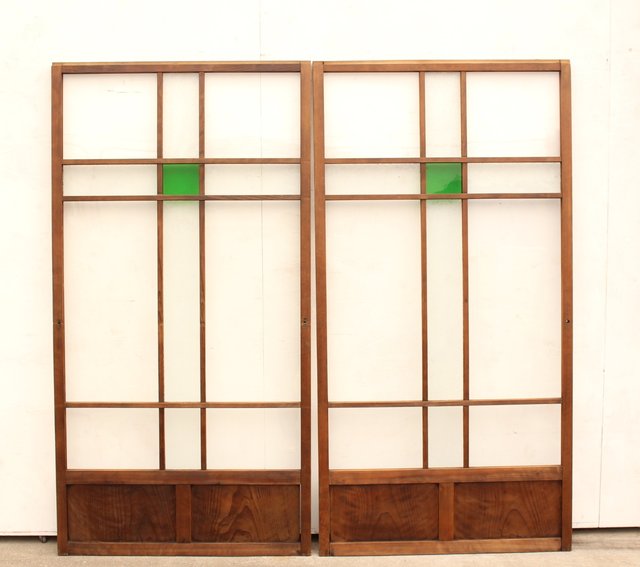 桜模様と緑色ガラスの建具 2枚1組 GD1050