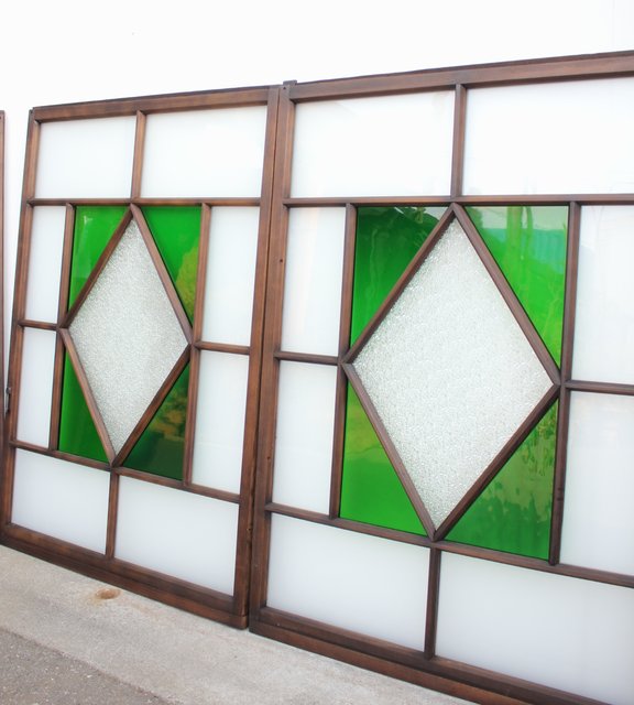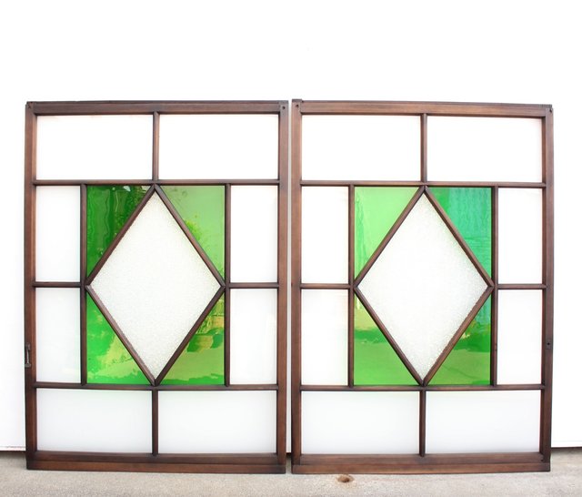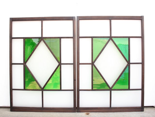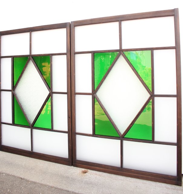 ダイアカット緑色ガラス戸 4枚1組 GD1073