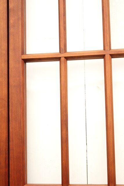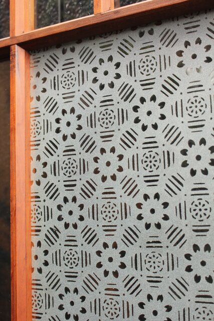 障子戸風にデザインされているのにガラスが使用されています
