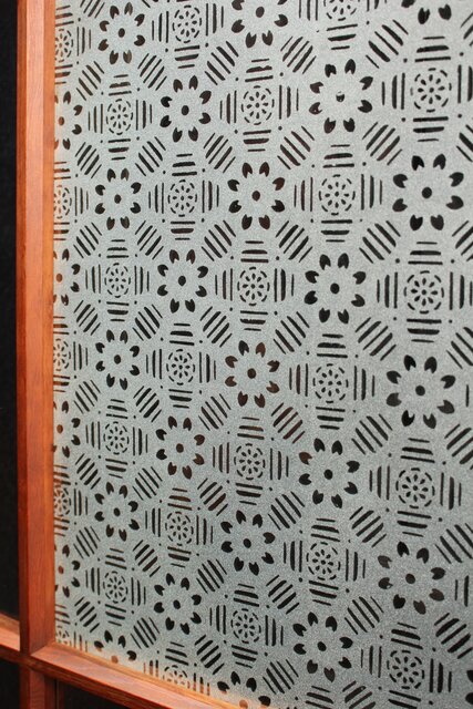 障子戸風デザインのガラス戸 4枚1組 GD1158 中央には腐食ガラス その他はクリアですっきり