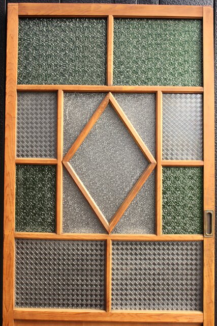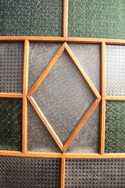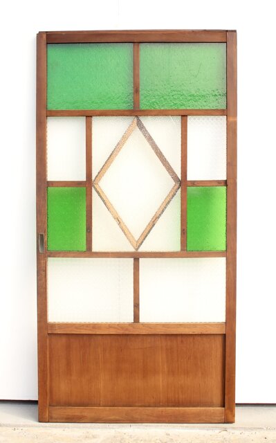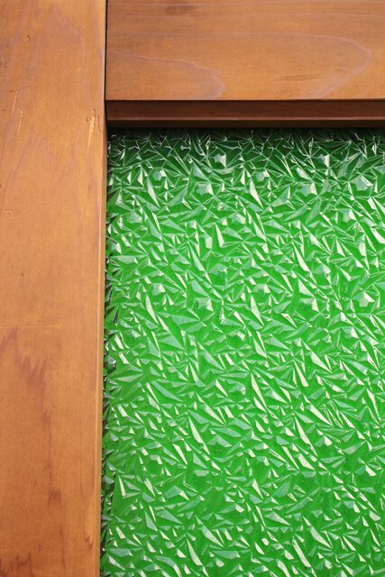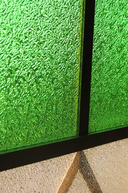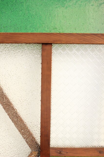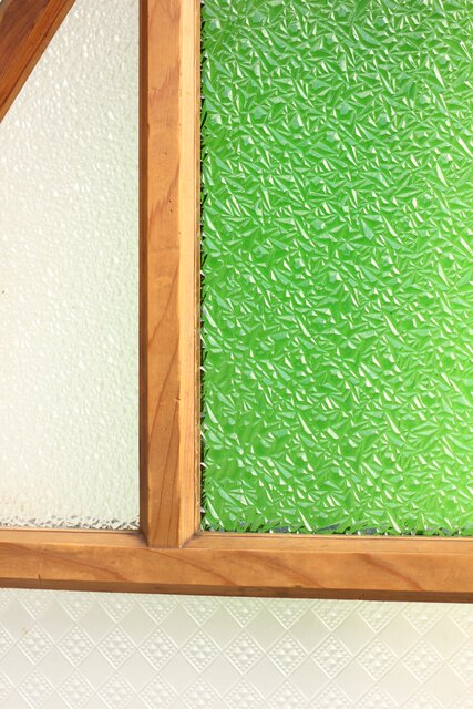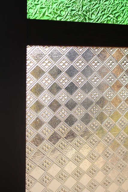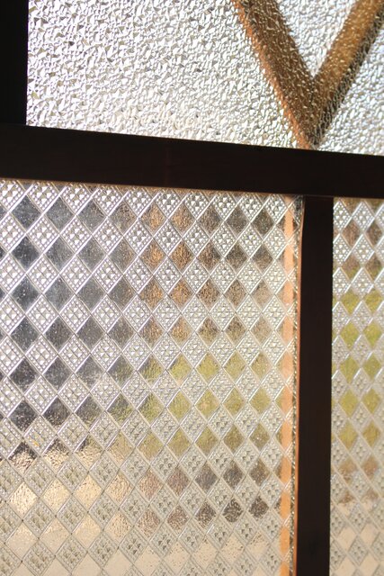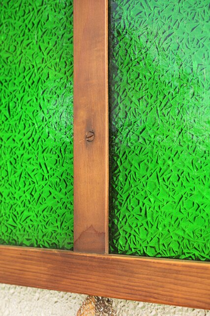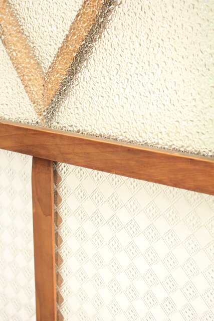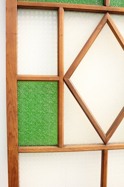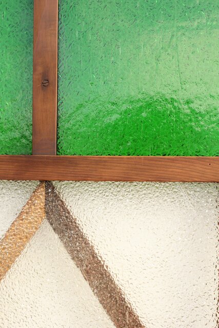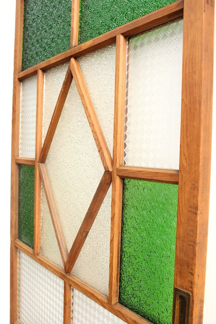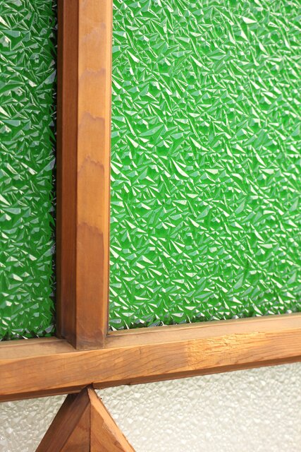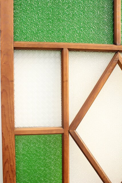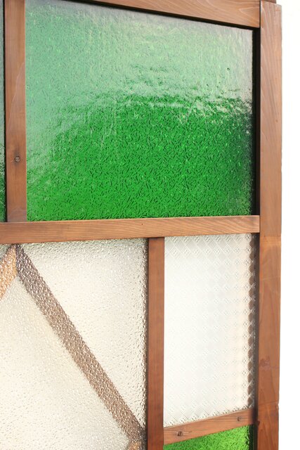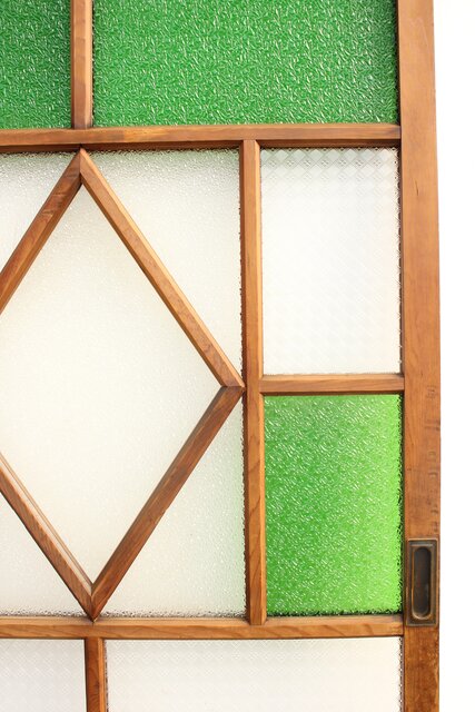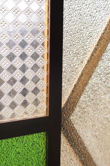 レトロガラスをふんだんに使用した 色ガラスのための建具です