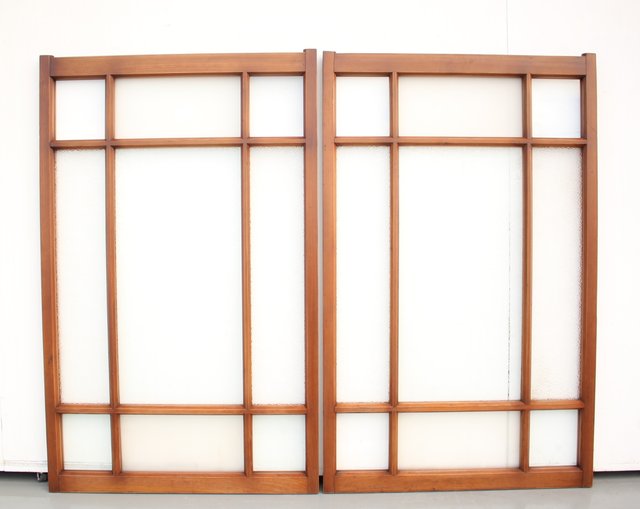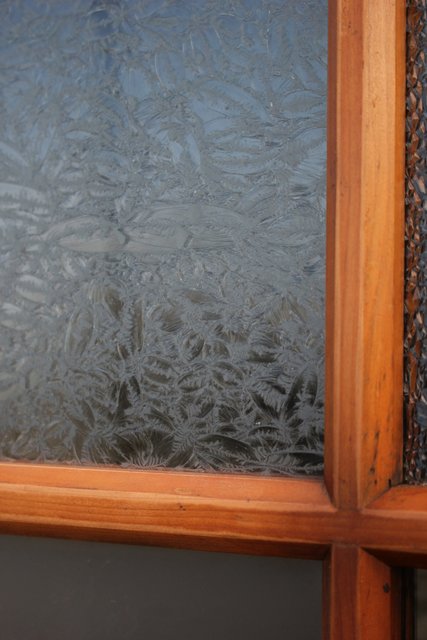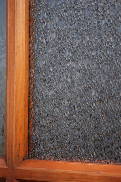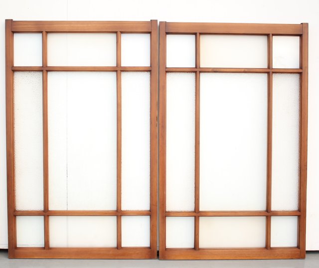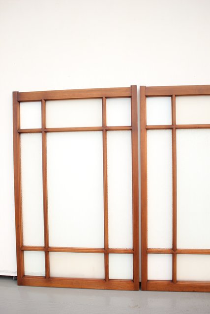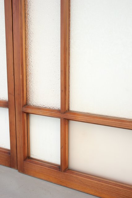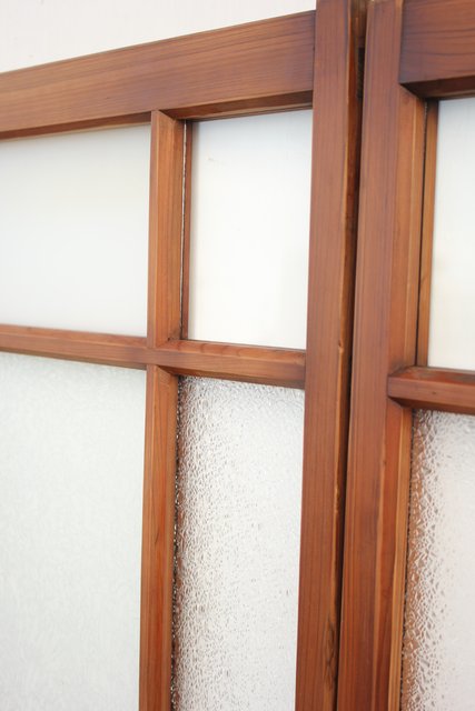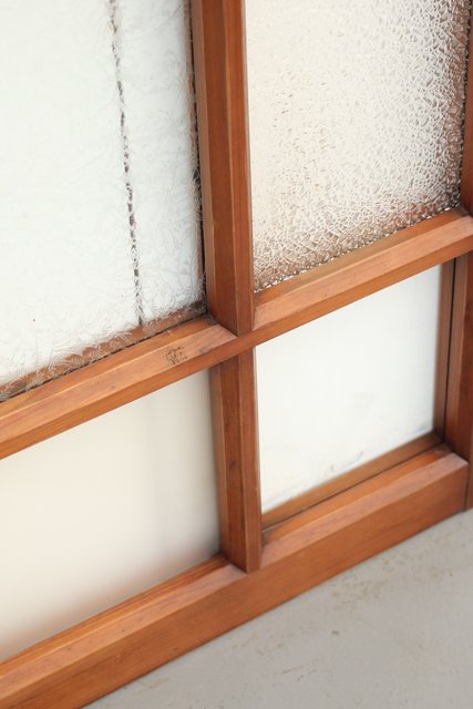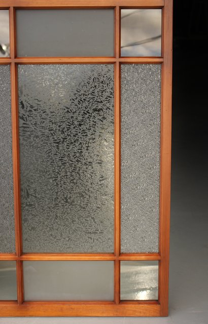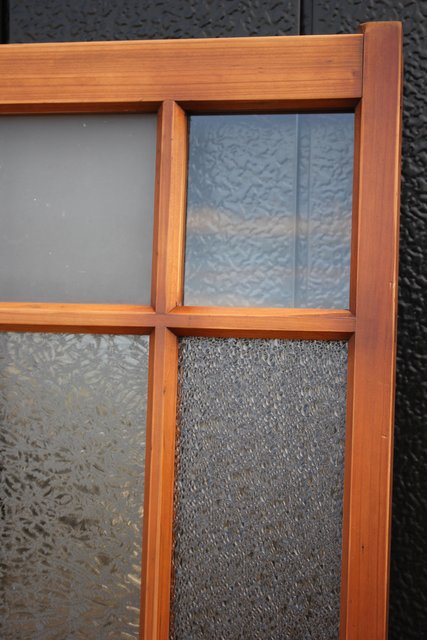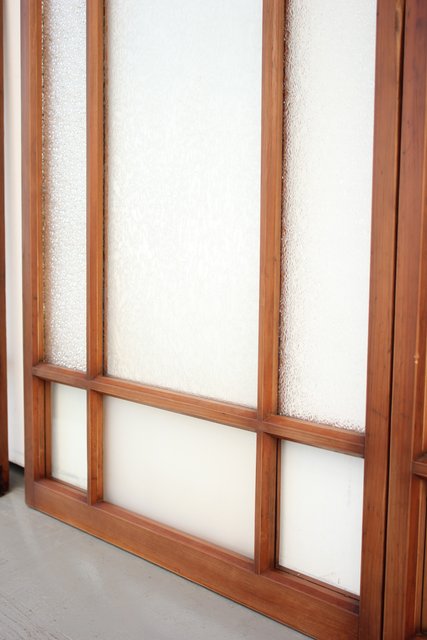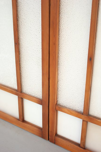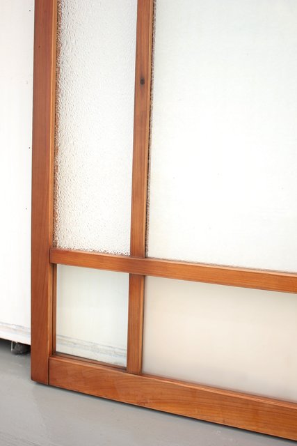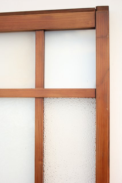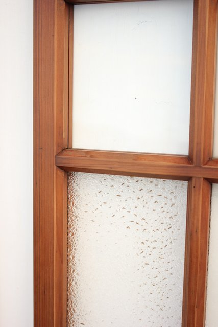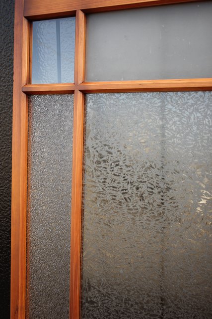 細かいパーツに分かれ 様々なレトロなガラスが使用されている建具