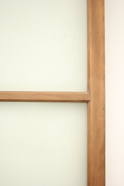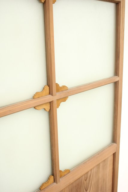 シンプルで素朴な白木のガラス戸