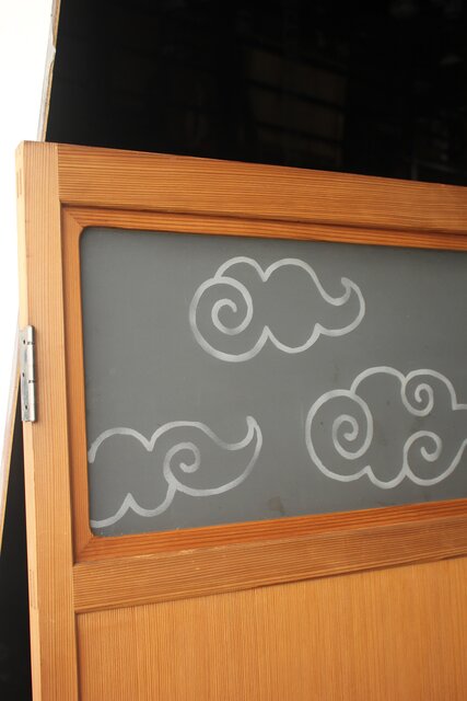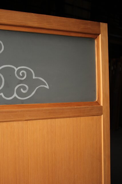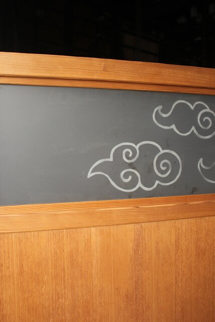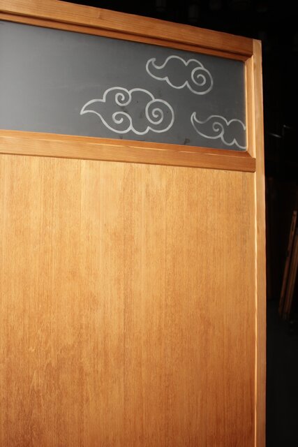 シンプルな雪隠戸に和雲紋のブラストガラス加工を合わせました