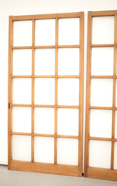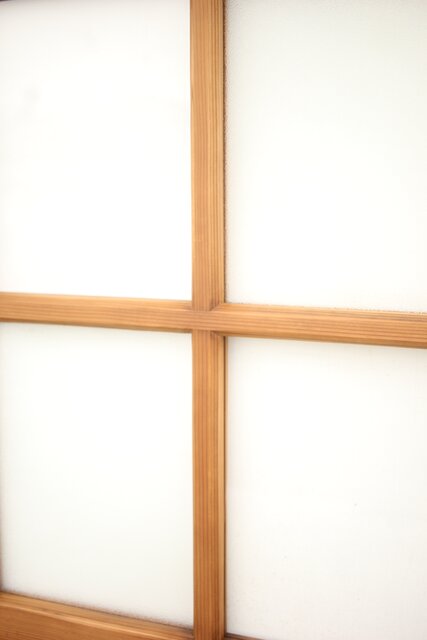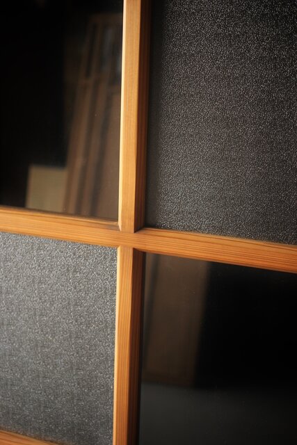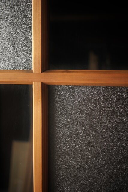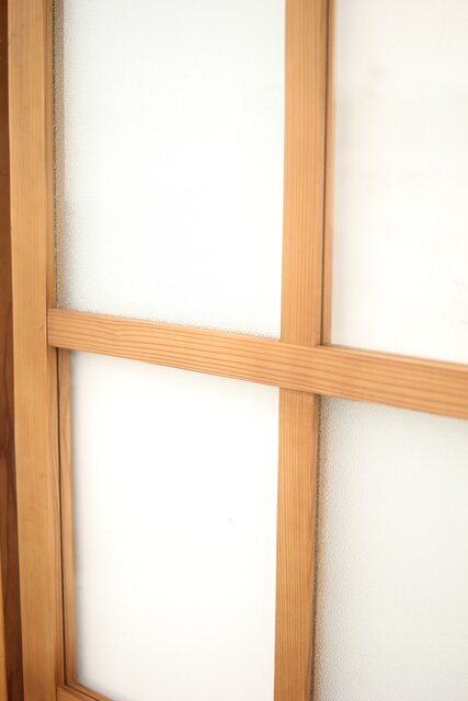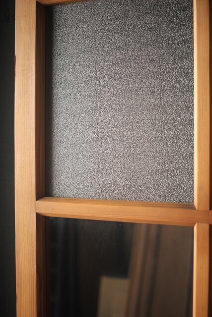 なしじガラスとクリアガラスが交互に配置されたガラス戸