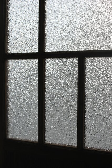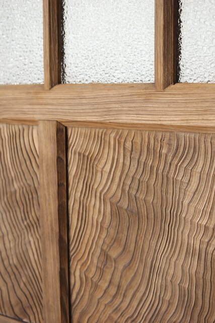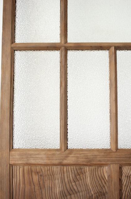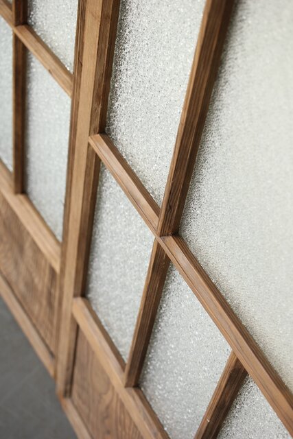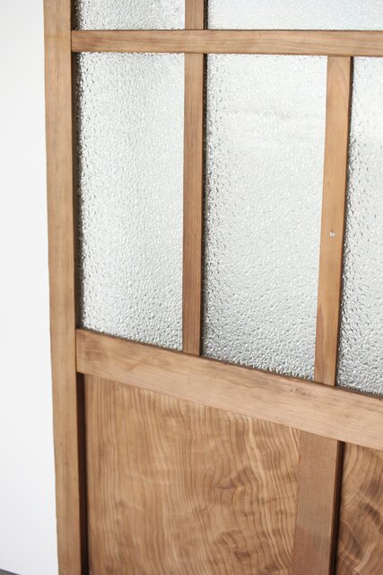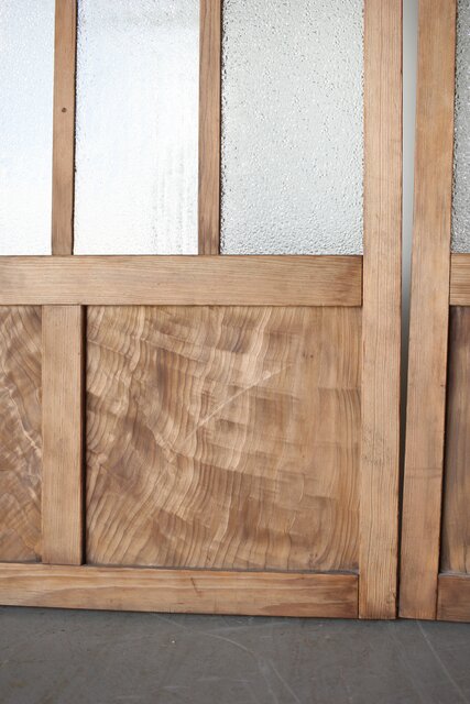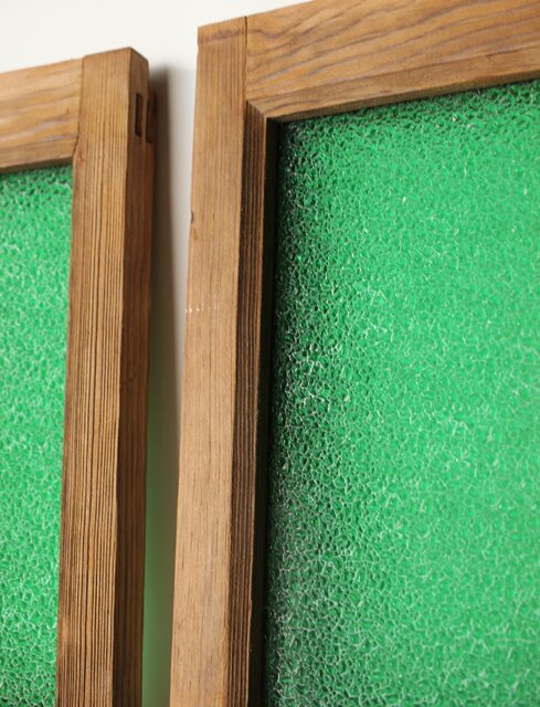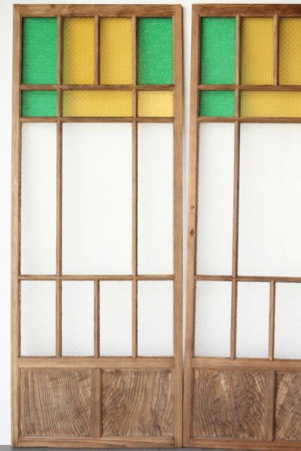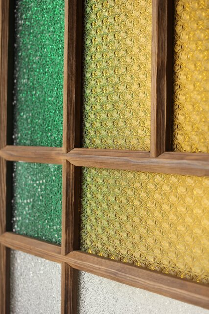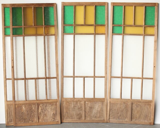 多種ガラス 細分割 緑黄色ガラス建具 4枚1組 GD0106Y 経年変化により 腰板は自然なうずくり仕様に