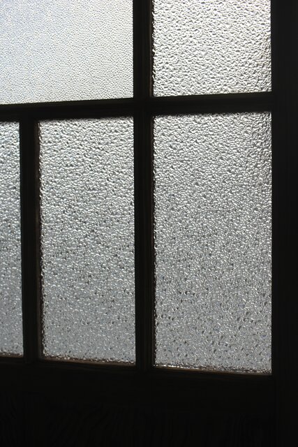 多種ガラス 細分割 緑黄色ガラス建具 4枚1組 GD0106Y 表は経年変化でうずくりのようなテクスチャに