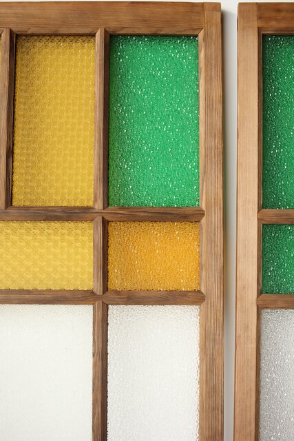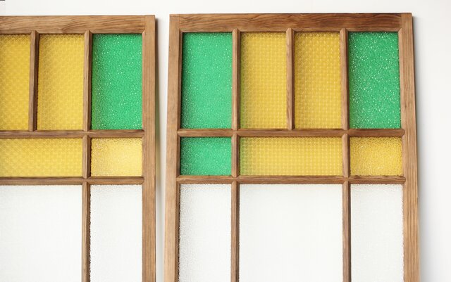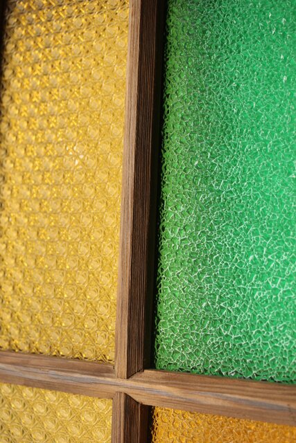 多種ガラス 細分割 緑黄色ガラス建具 4枚1組 GD0106Y B 表面
