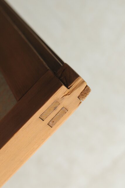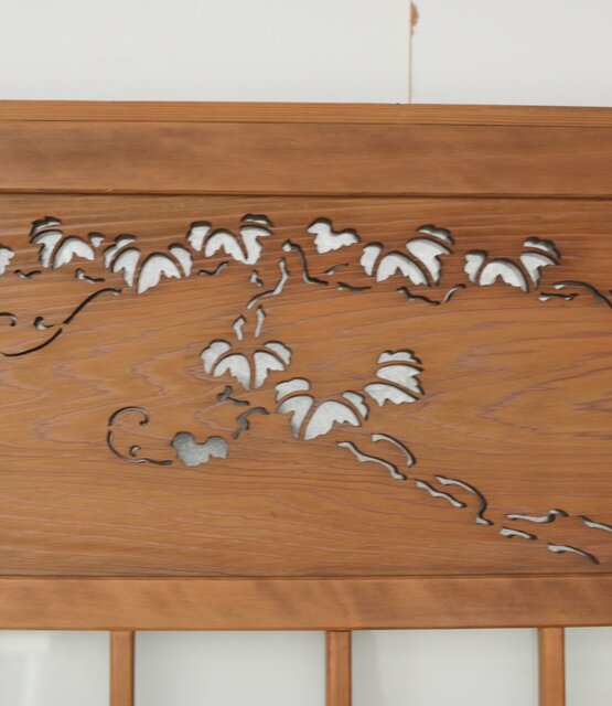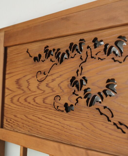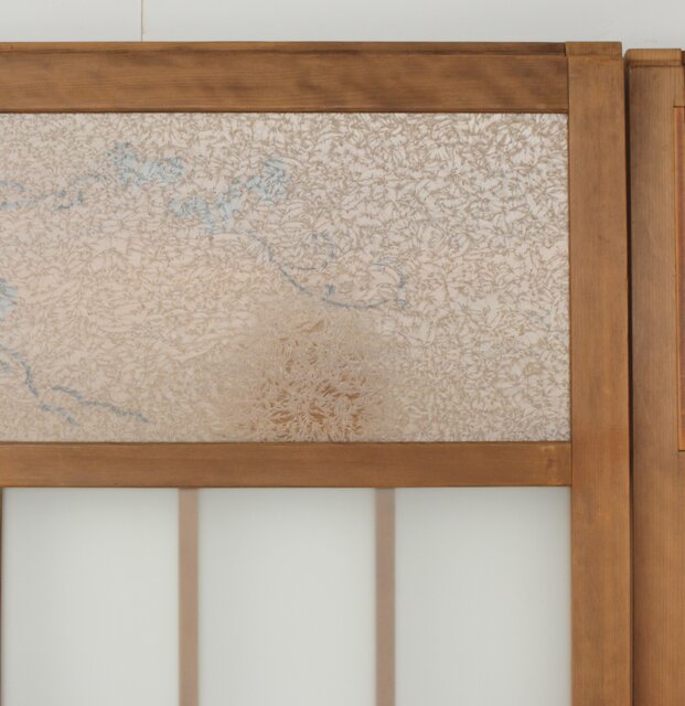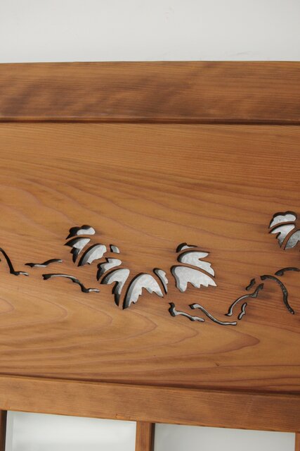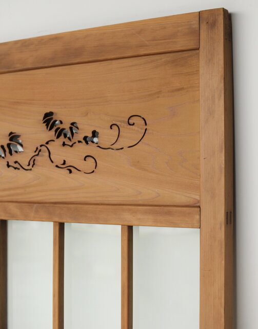 上部の洒落た蔦の透かしの裏にはにかわガラス