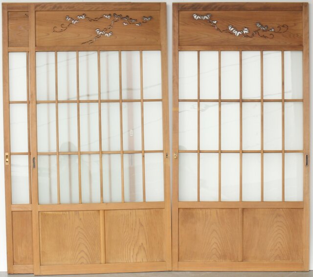 蔦模様 ガラス戸 3枚1組 GD0169YD 鍵や引手の位置が他の2枚と異なります