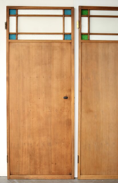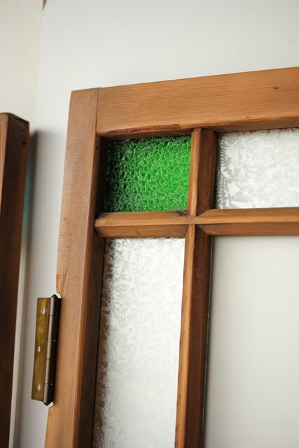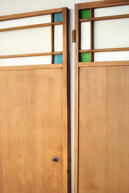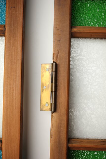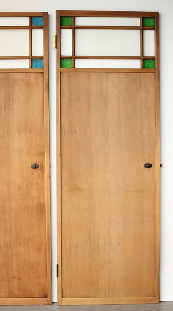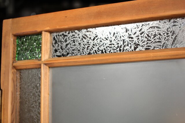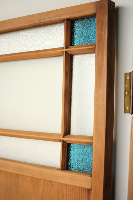 色ガラスの雪隠戸 2枚1組 GD0179 蝶番も当時ものですが 取り換えた方がベター