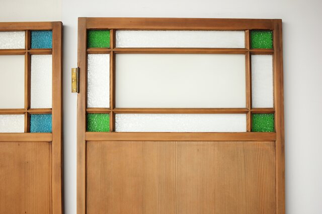 色ガラスの雪隠戸 2枚1組 GD0179 稀少な色ガラス