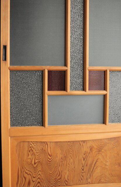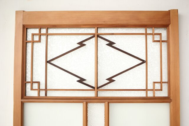 松皮菱組子 色ガラスの建具 GD0189 腰板の杢目 さらに縁取りも素敵な意匠です