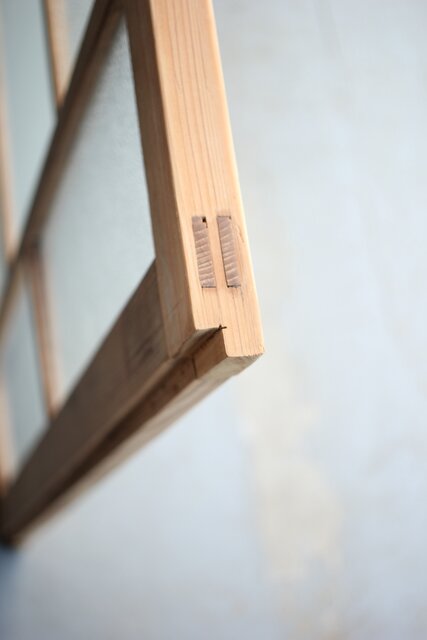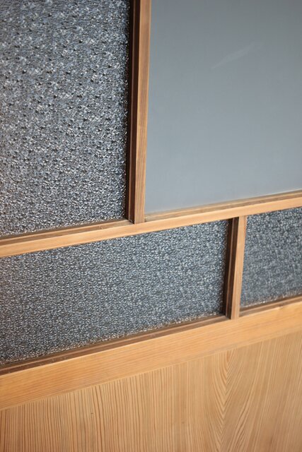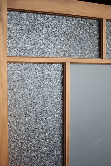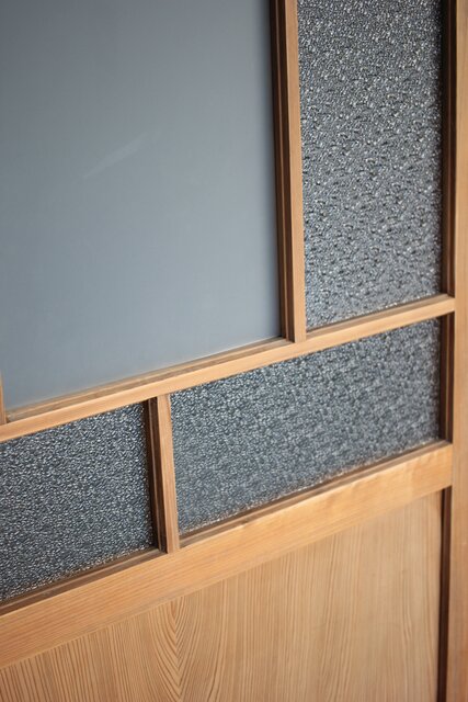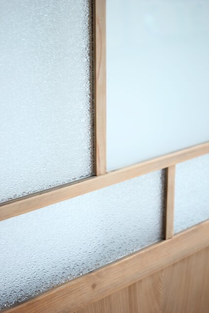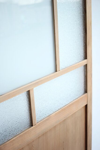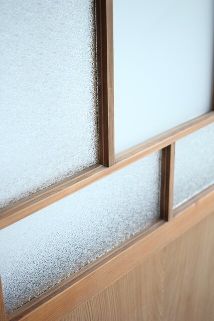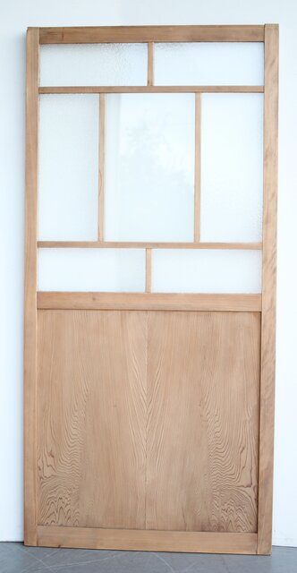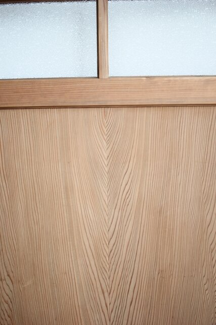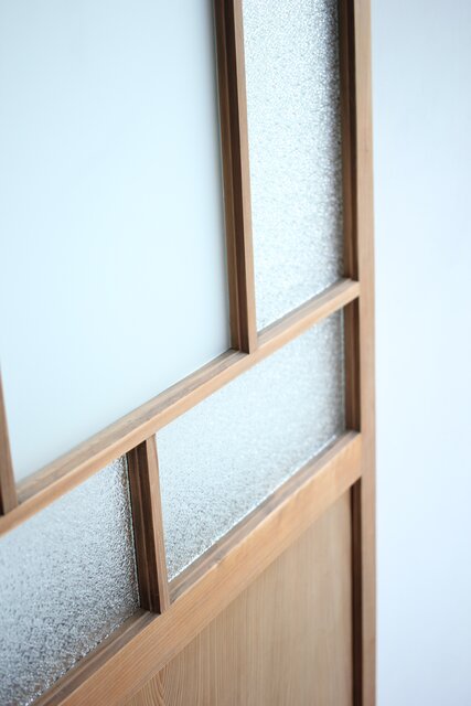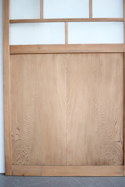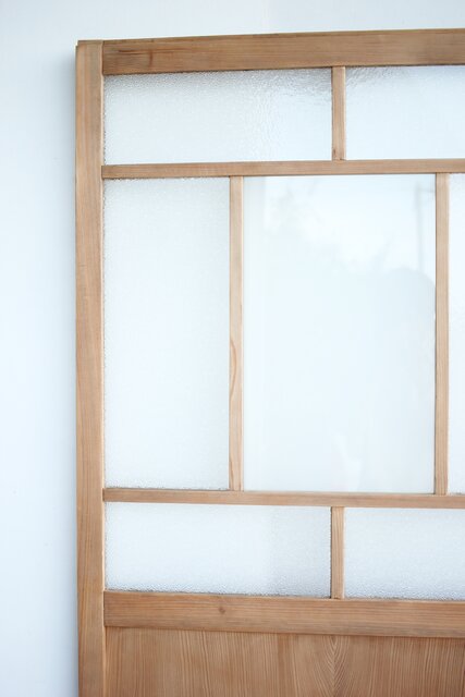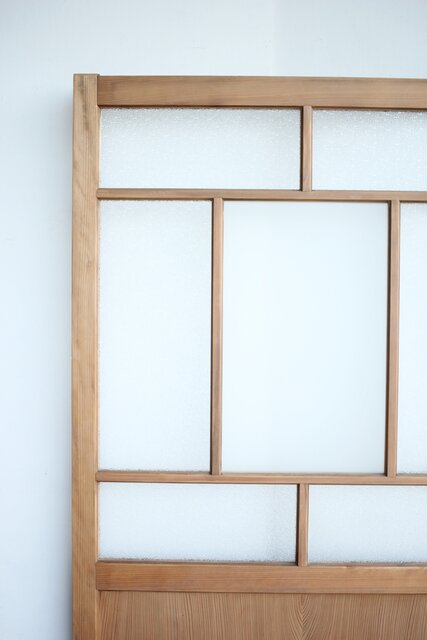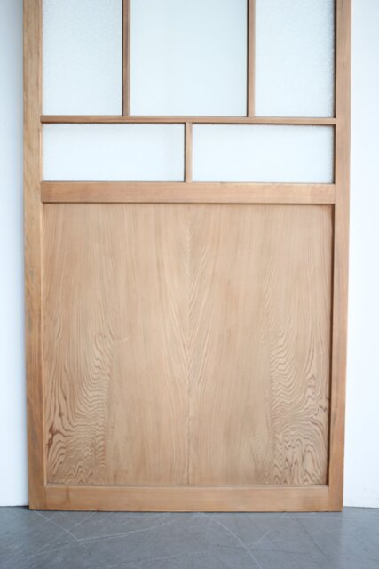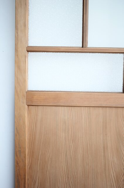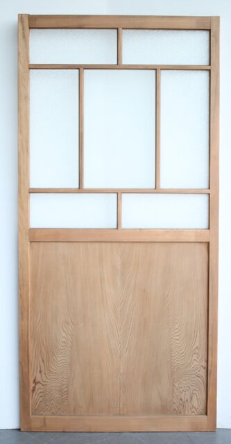 白木ガラス戸 GD0204 左右対称の腰板 しゃれた加工です