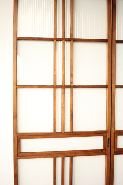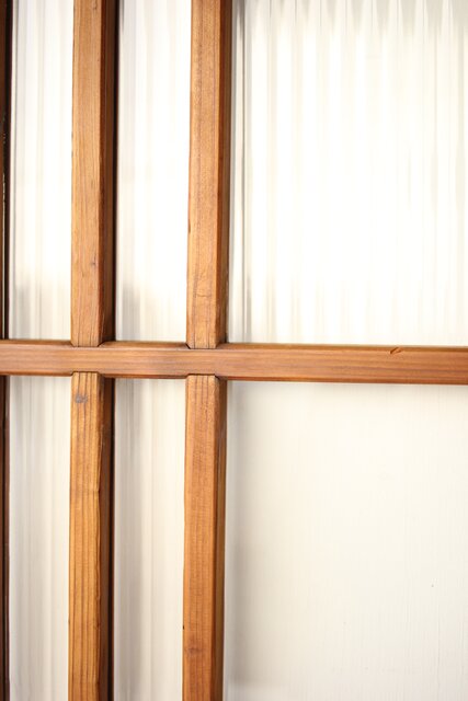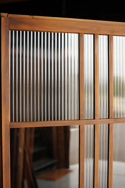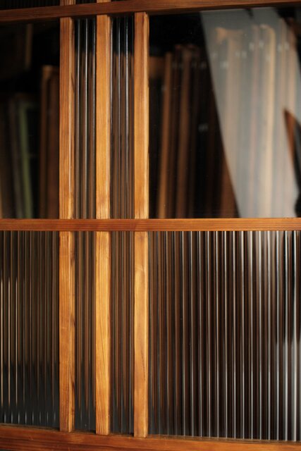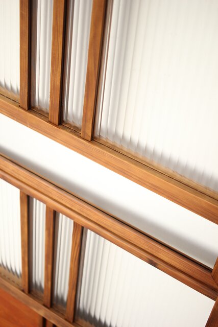 桟のラインも細く 個性的な建具です