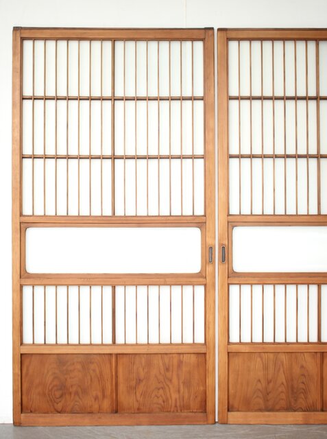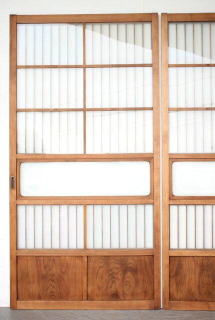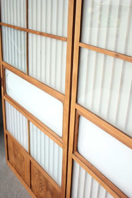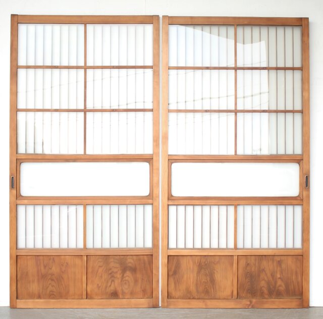障子風 ガラス戸 2枚1組 GD0292 内一枚に少しガラスに癖 交換希望であればお申し付けください