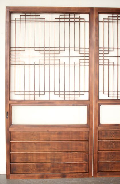 五鈷杵ガラス 組子建具 2枚1組 GD0323 上框が外せます